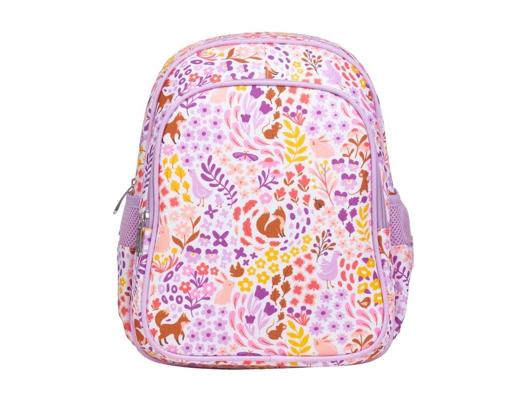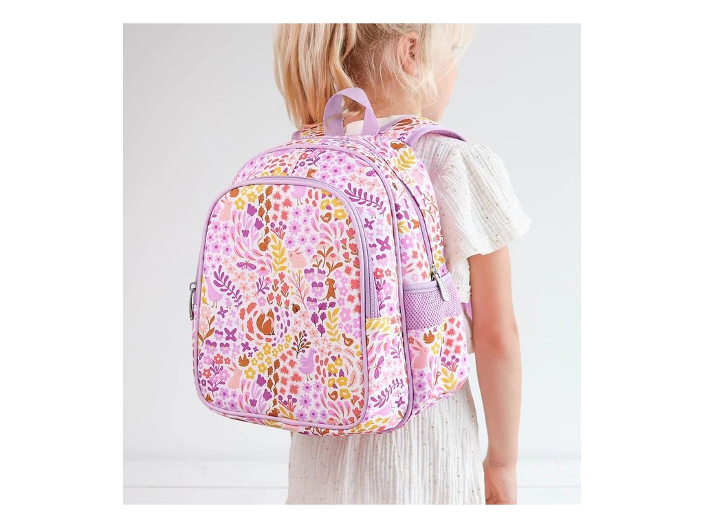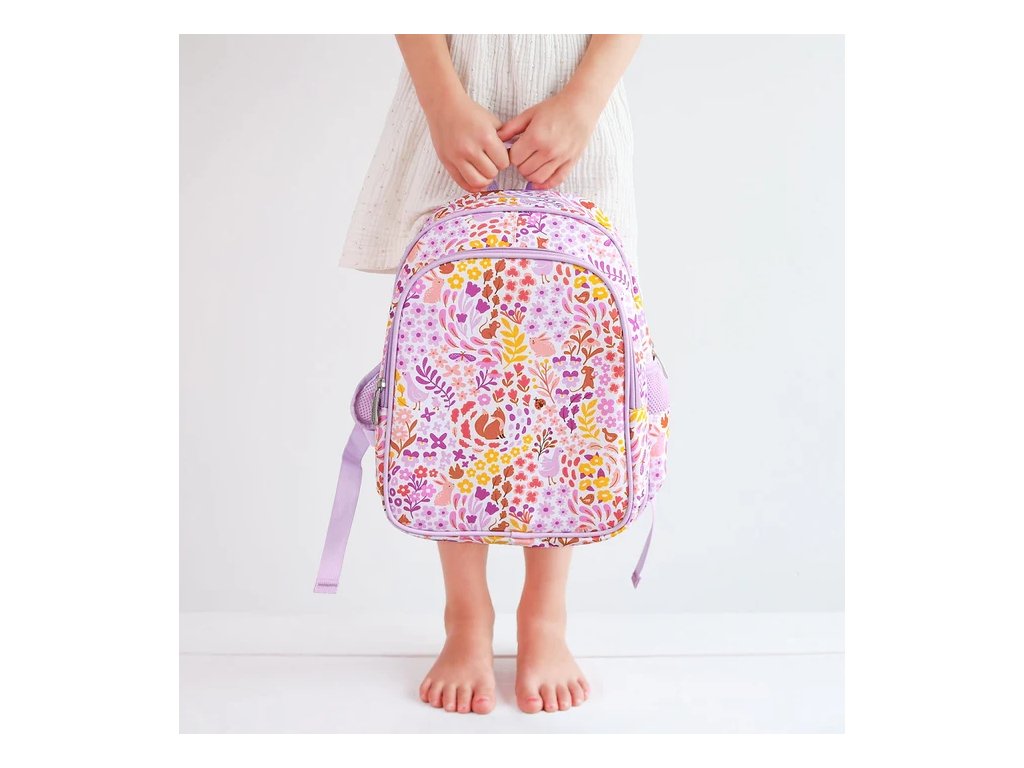 Acest rucsac violet fermecător, cu flori și vulpi, este companionul perfect pentru școală și excursii. Are un compartiment principal spațios pentru caiete sau haine, un buzunar frontal izolat pentru gustări și două buzunare laterale pentru sticle sau obiecte mici. Datorită curelelor moi căptușite, curelei pentru piept și spatelui respirabil, rucsacul este confortabil de purtat chiar și în zilele lungi.