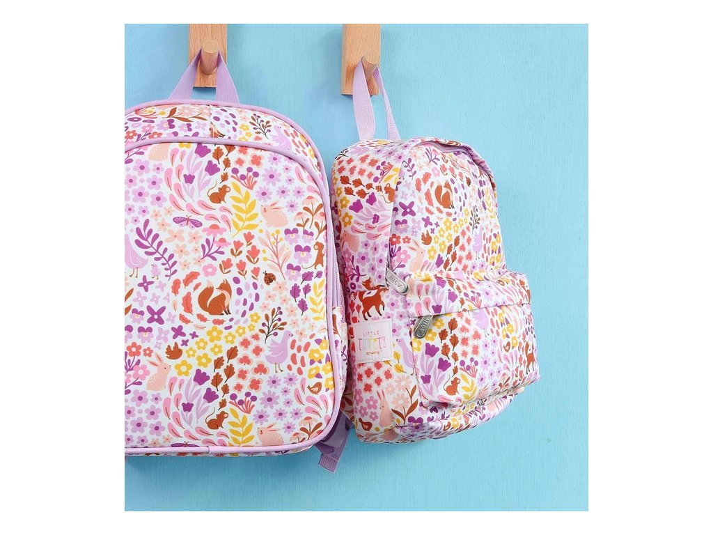 Mergi la școală cu un rucsac violet plin de flori și vulpi drăguțe! Practic, spațios și confortabil – ideal pentru gustări, sticle și aventurile de zi cu zi.