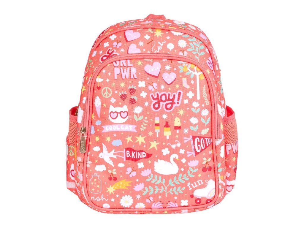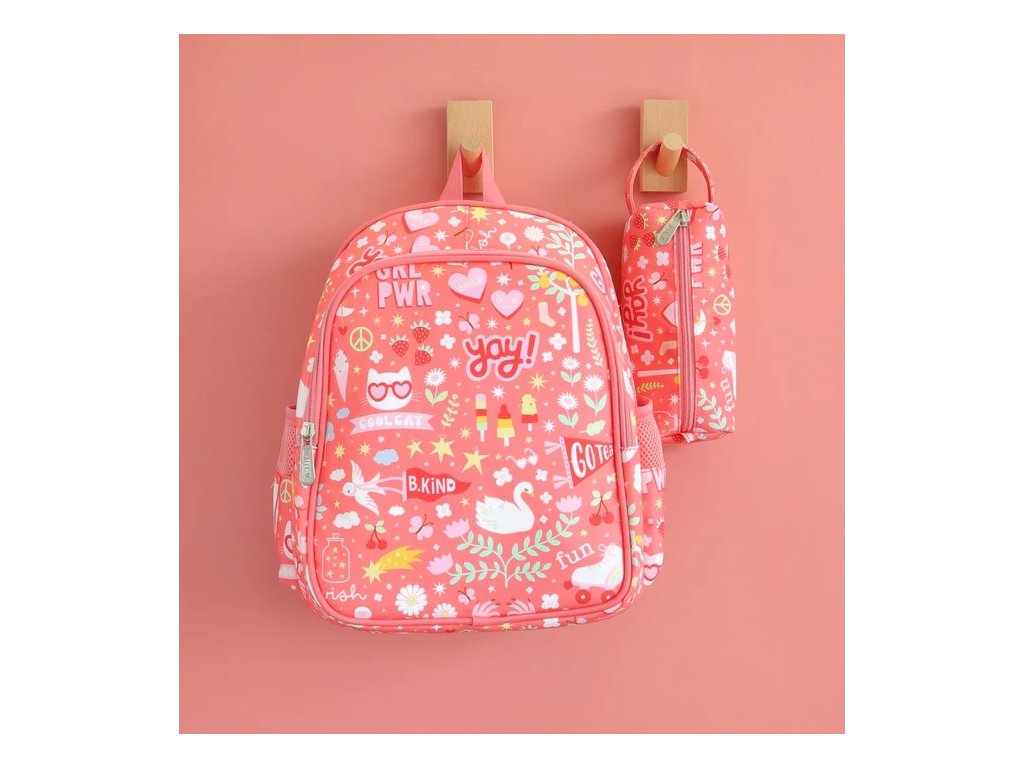 Acest rucsac roz coral cu un design vesel Fun este ideal pentru școală și excursii! Datorită buzunarelor practice, curelelor căptușite și curelei pentru piept, va fi un companion confortabil și elegant în fiecare zi.