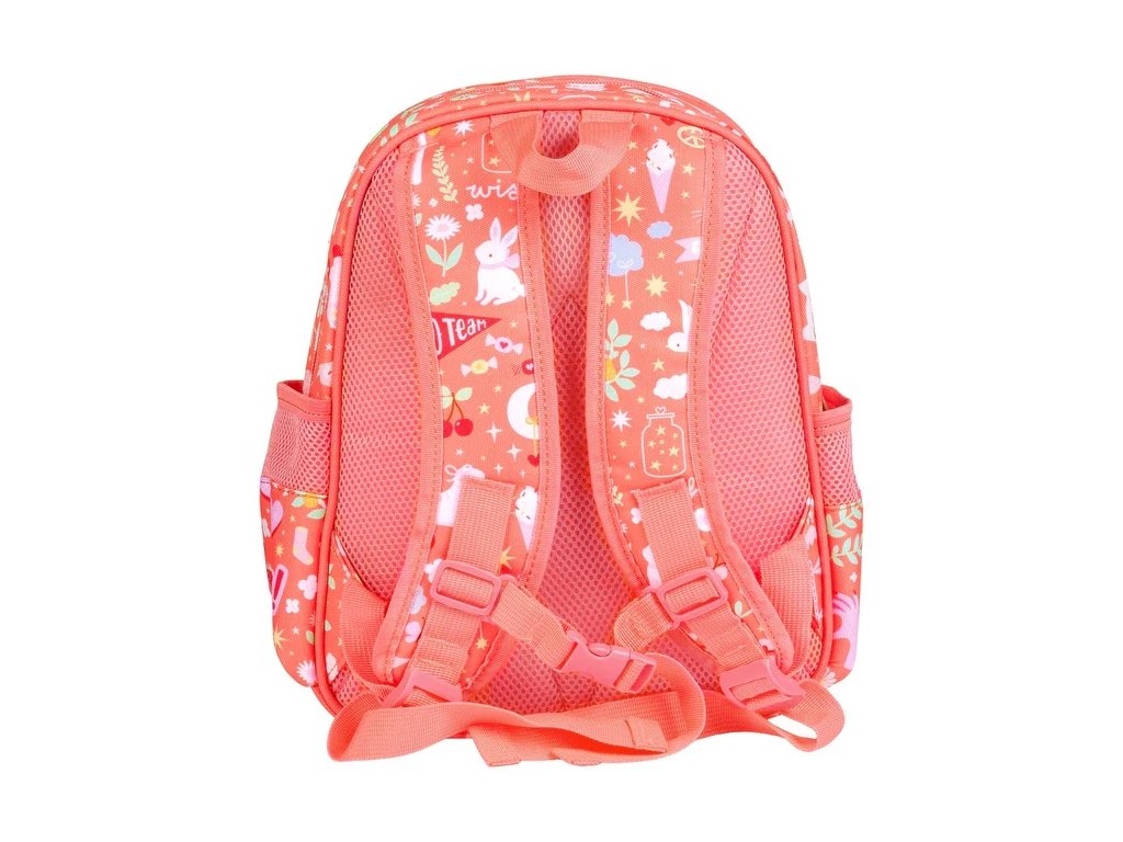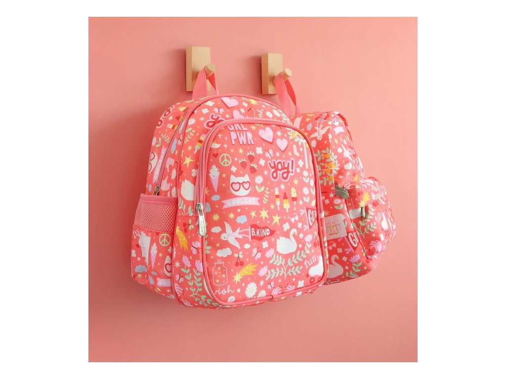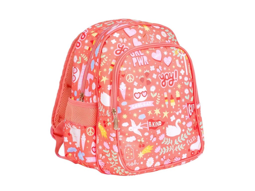 Un rucsac vesel, de culoare roz coral, cu un design distractiv, pentru zile de școală pline de bucurie!