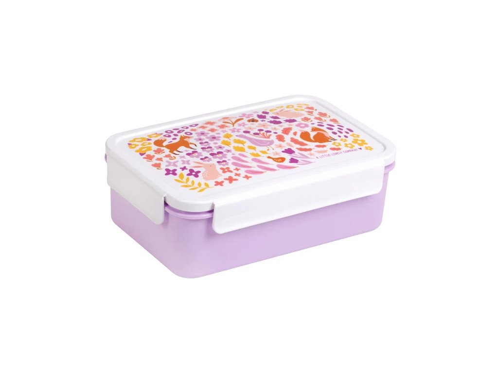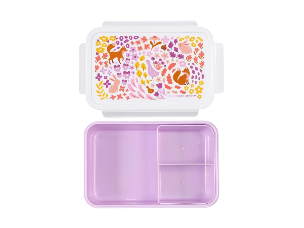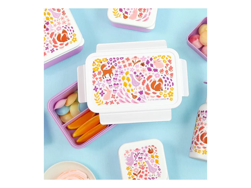 Această cutie Bento drăguță, de culoare violet, cu flori și vulpi, va încânta fiecare mic aventurier. Compartimentele practice și închiderea ermetică vor păstra gustările proaspete și organizate pe tot parcursul zilei! ?
