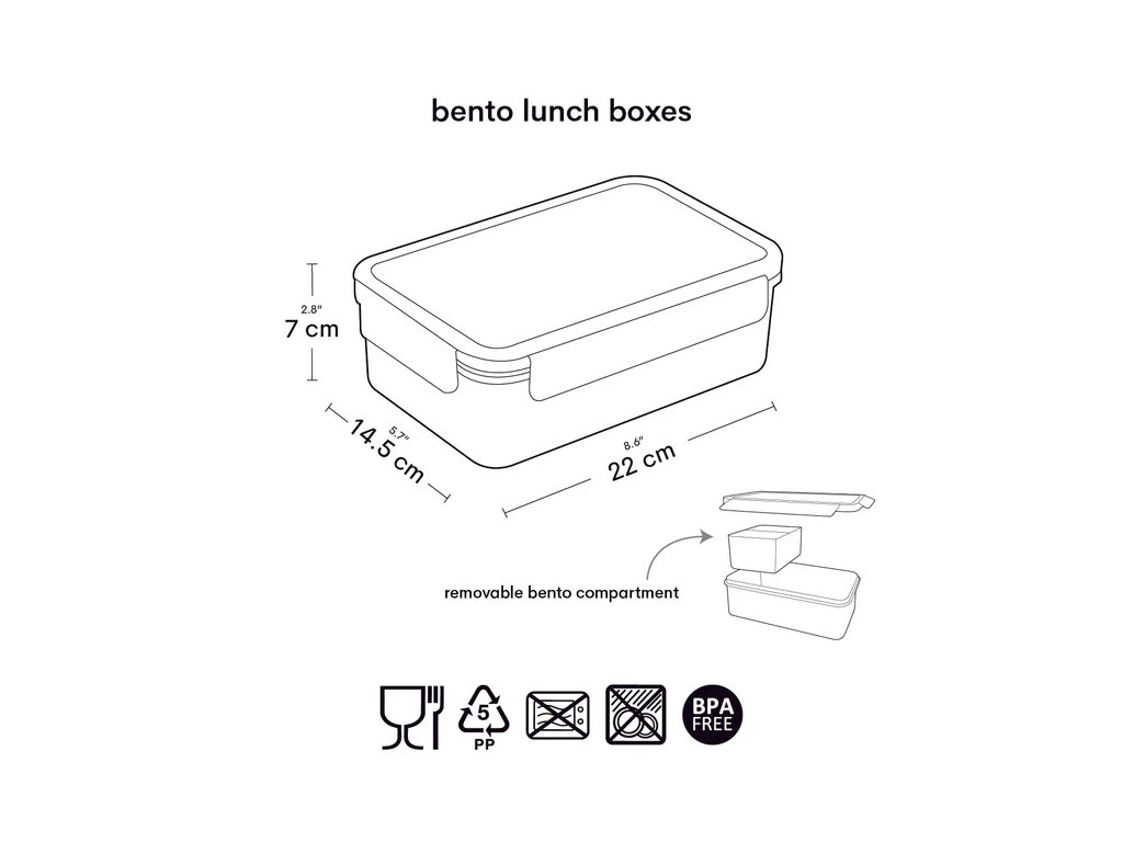 • Cod produs: BBFGMU79 • Dimensiuni: cutie 22 x 7 x 14,5 cm | compartiment 9 x 5,5 x 12,5 cm • Volum: 1,2 litri • Culoare: violet Culoare: violet• ? Material: PP (polipropilenă)
