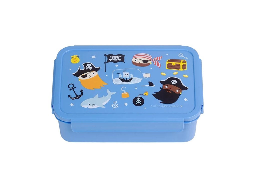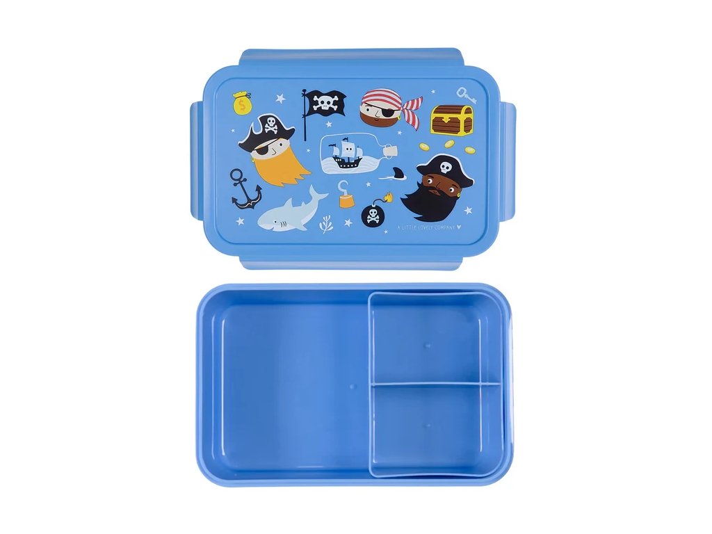 ?? Haideți să pornim într-o aventură cu cutia Bento albastră cu tematică pirat! Închiderea ermetică și compartimentele practice păstrează fiecare gustare proaspătă și perfect organizată. ?