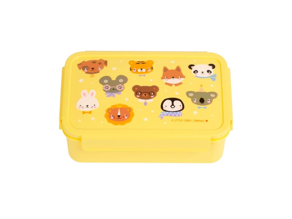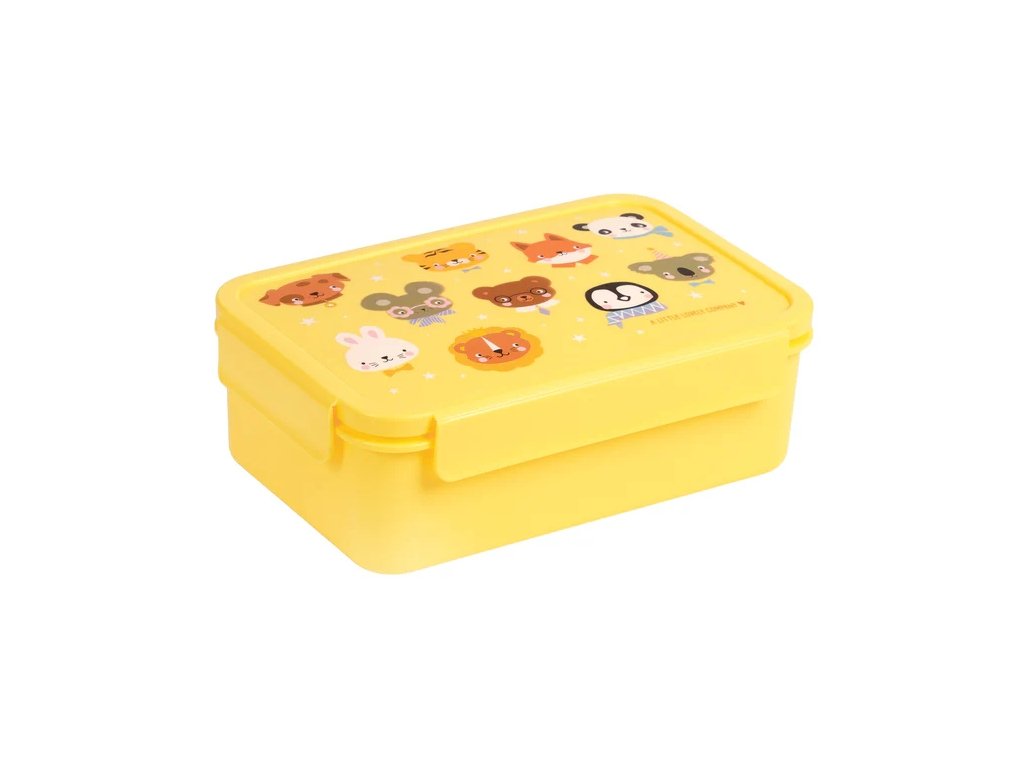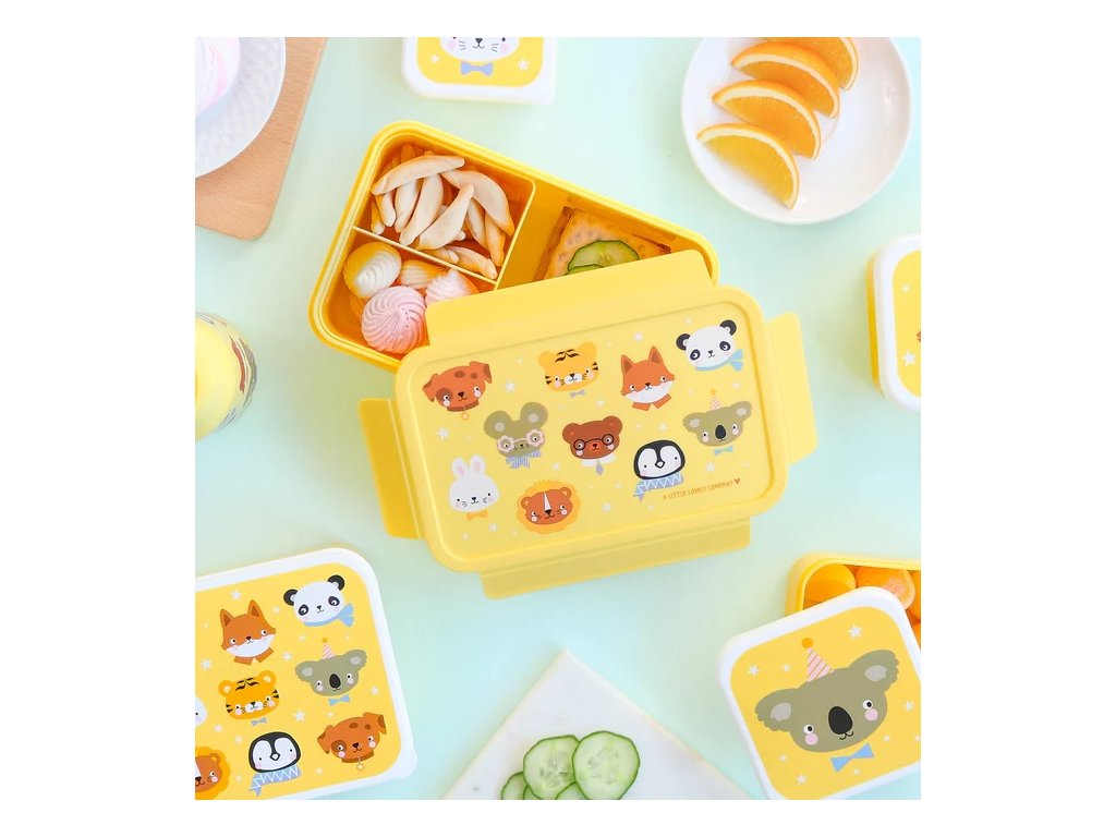 Această cutie bento veselă, de culoare galbenă, cu animale prietenoase, este perfectă pentru un prânz gustos și colorat la școală sau în excursie. Datorită capacului etanș click & close și tăvii practice pentru bento cu două compartimente, totul rămâne proaspăt și bine organizat.