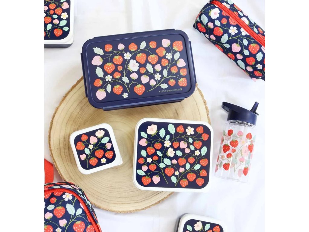 Această sticlă transparentă adorabilă cu motiv de căpșuni va încânta fiecare mic iubitor de fructe! Cu o capacitate de 450 ml și fabricată din Tritan rezistent, este ușoară și etanșă.b>, este ușoară, etanșă și ideală pentru aventurile de-a lungul întregii zile. Combinați-l cu un penar, o cutie pentru prânz și un rucsac în același design pentru un set școlar perfect! ?