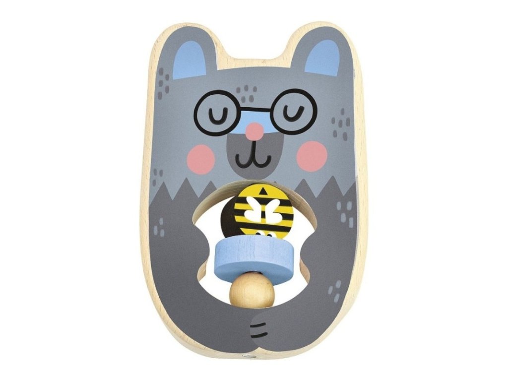 O frumoasă zornăitoare din lemn cu motiv de licurici, proiectată de Michelle Carlslund. În mijloc se află trei mărgele colorate care zornăie plăcut. Jucăria este ambalată într-o pungă din țesătură și este potrivită și ca cadou.