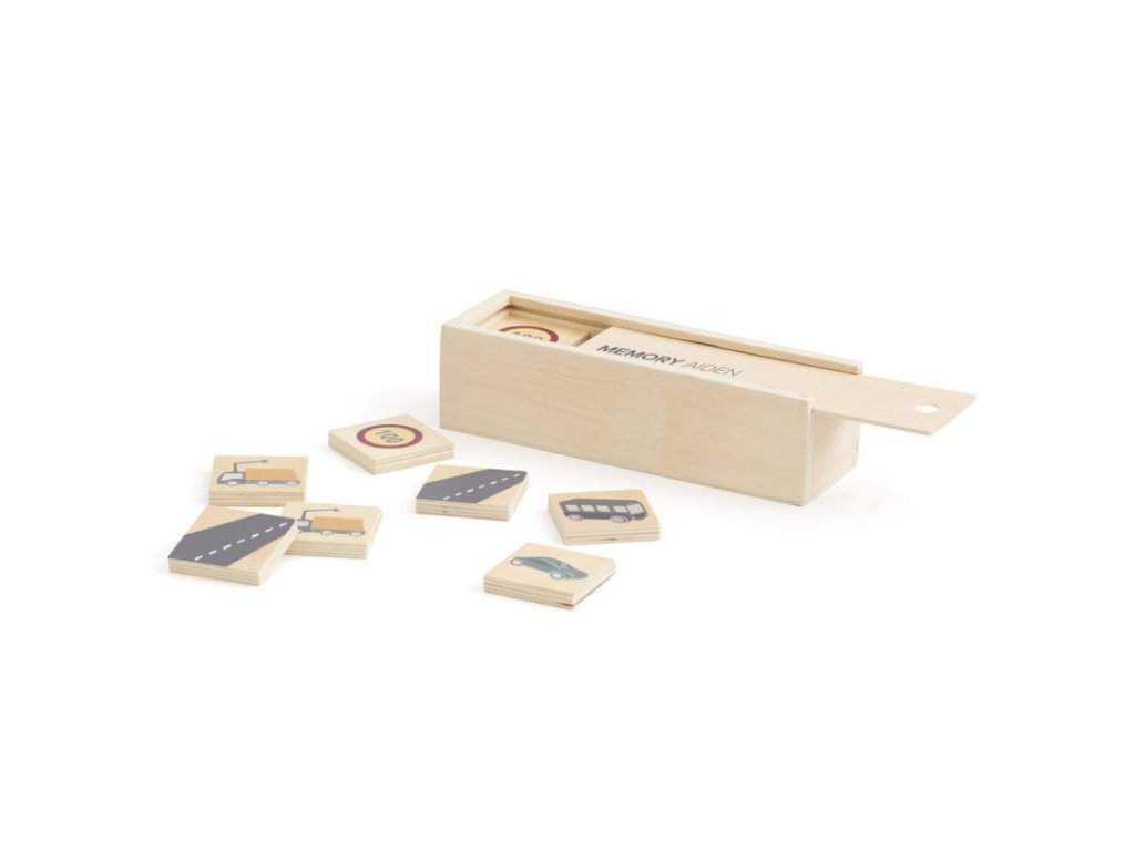 Jocul de memorie „pexeso” este cunoscut de toată lumea – atât de copii, cât și de adulți. Face parte dintre clasicele îndrăgite care nu se demodează niciodată. Acest pexeso pentru copii în frumoasă variantă din lemn cu imagini de mașini, camioane și semne de circulație face parte din seria de jucării din lemn Aiden.