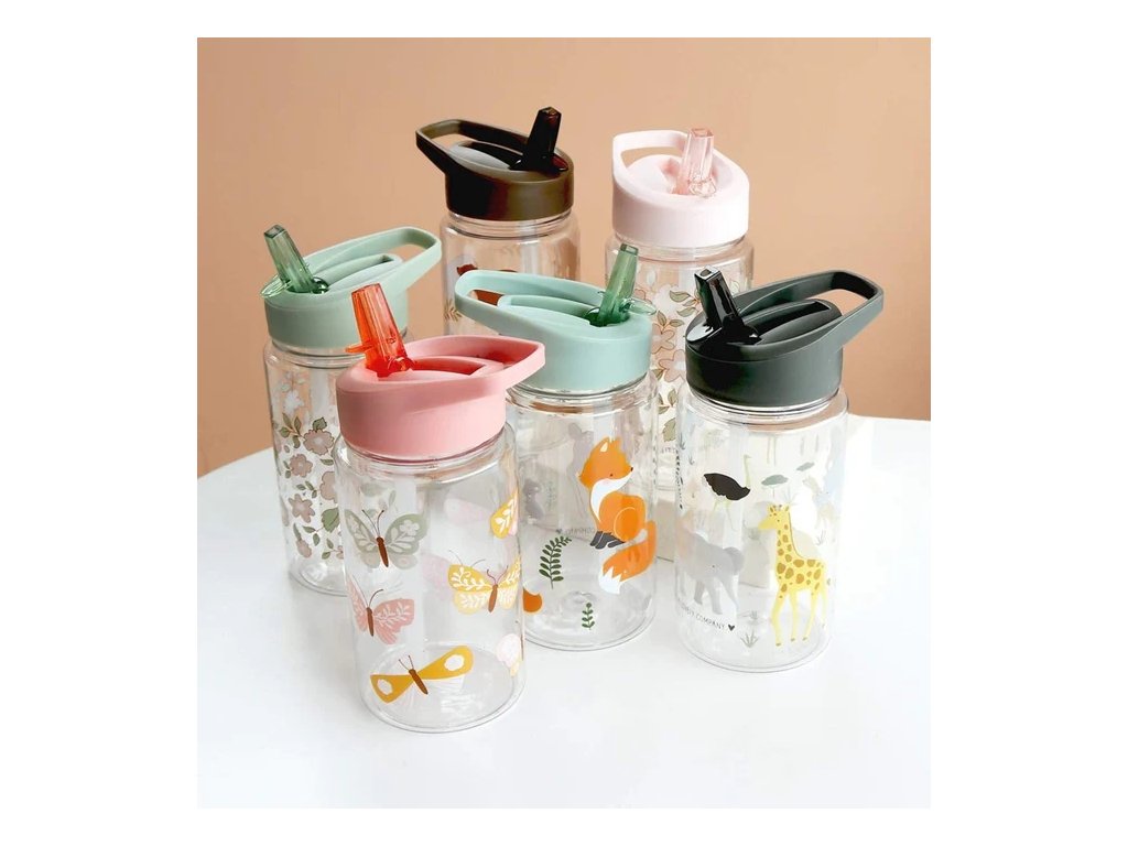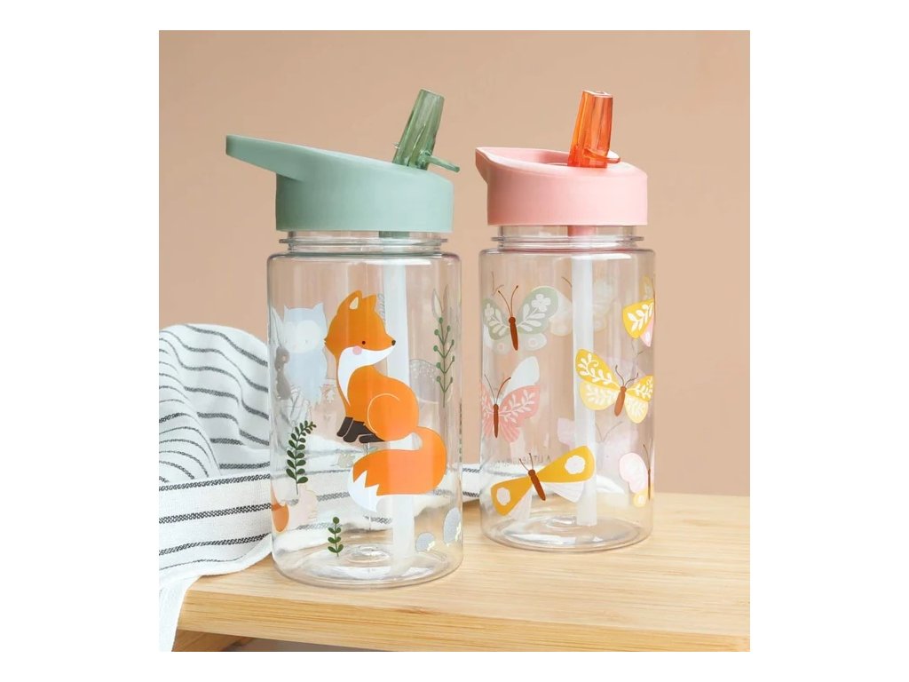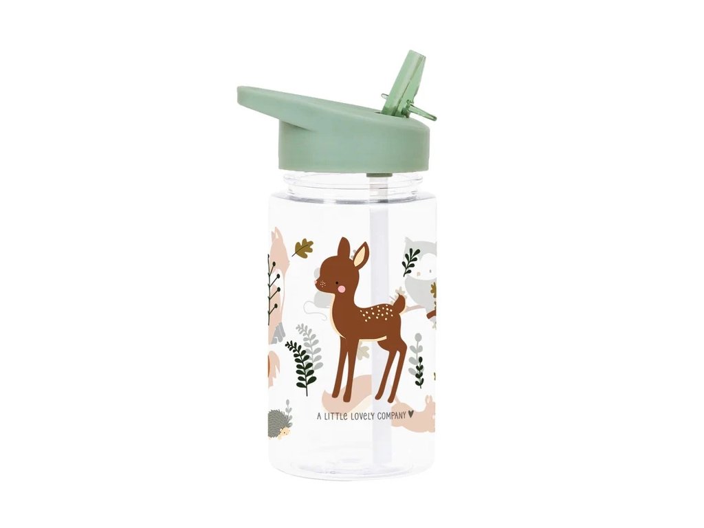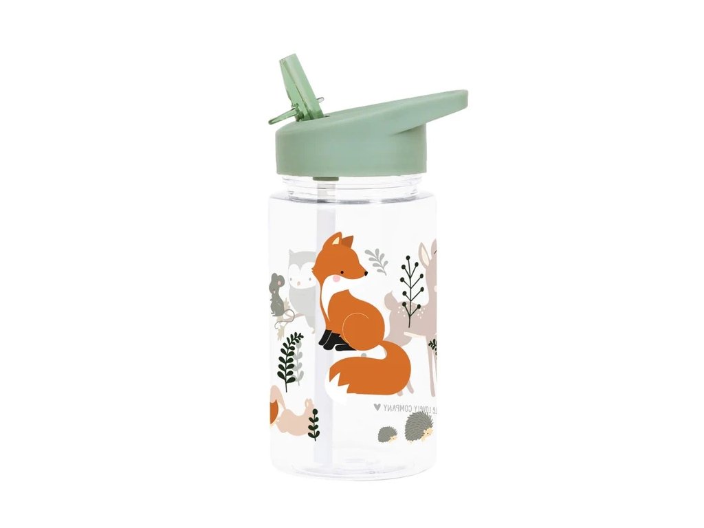Această sticlă elegantă cu motivul prietenilor din pădure este companionul ideal pentru școală sau excursii!