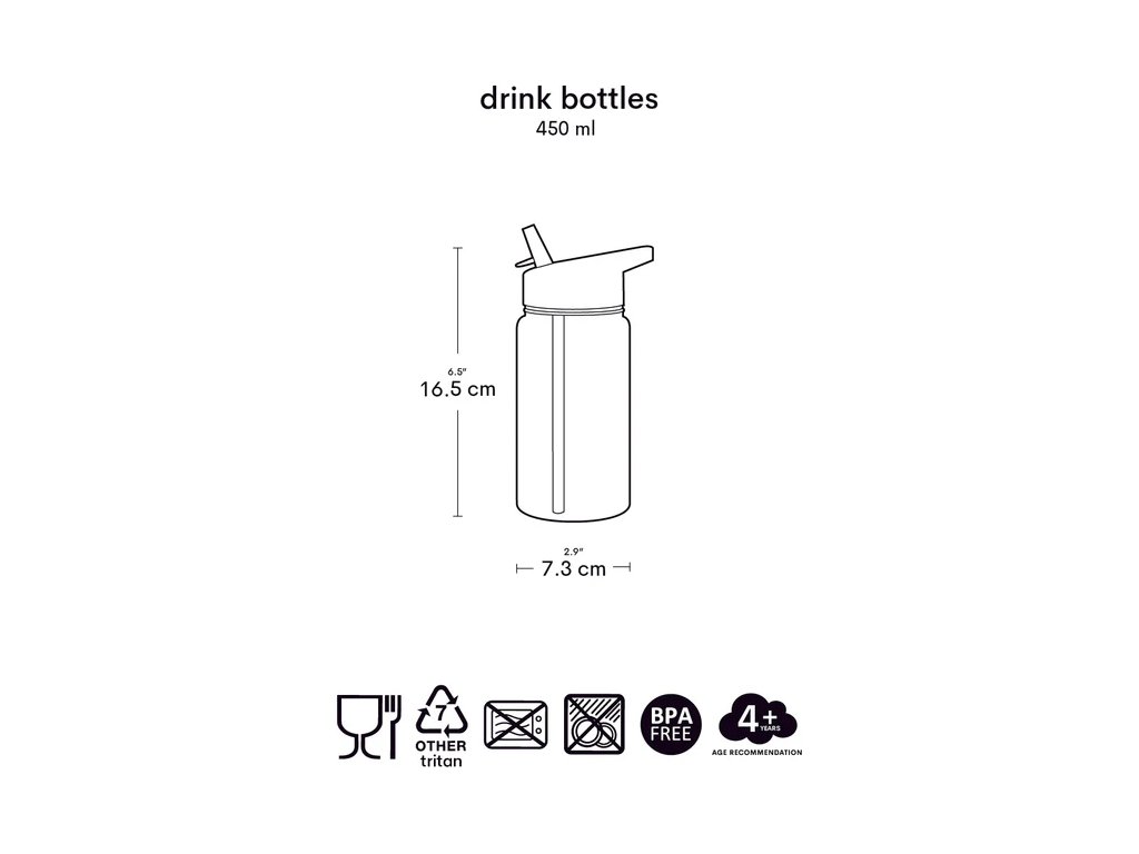 Designul său etanș, capacitatea de 450 ml și Tritanul rezistent o fac alegerea perfectă pentru micii aventurieri!