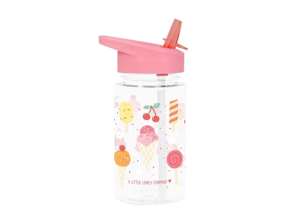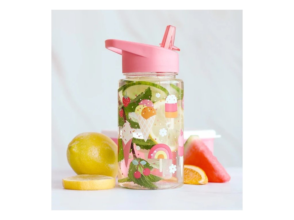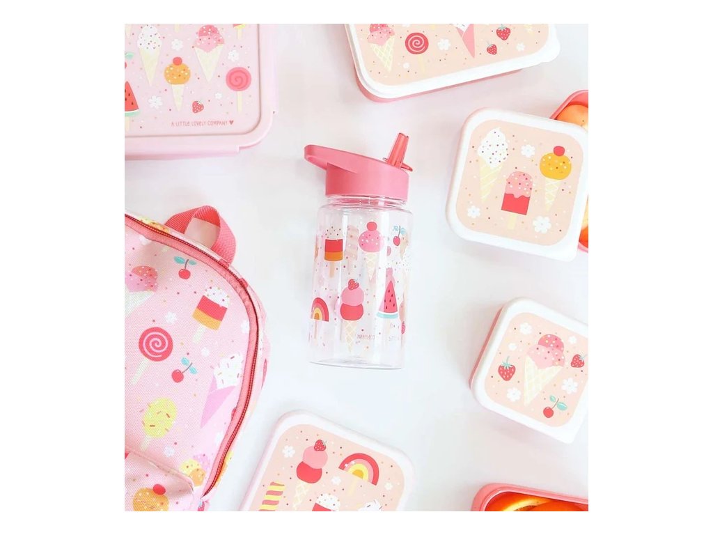 Această sticlă transparentă cu motiv de înghețată este companionul perfect pentru școală sau excursii! Designul etanș și capacitatea de 450 ml vor păstra băuturile proaspete în orice moment. Fabricată din Tritan durabil, sigură pentru copii și ușor de transportat. Adăugați un penar, o cutie pentru prânz și un rucsac cu motiv fluture pentru un set școlar elegant!