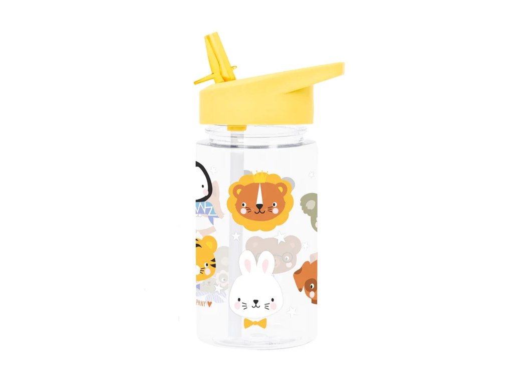 Jucăușă și practică! Această sticlă transparentă cu prieteni animale are un volum de 450 ml, este etanșă și fabricată din Tritan rezistent – ideală pentru școală și excursii.