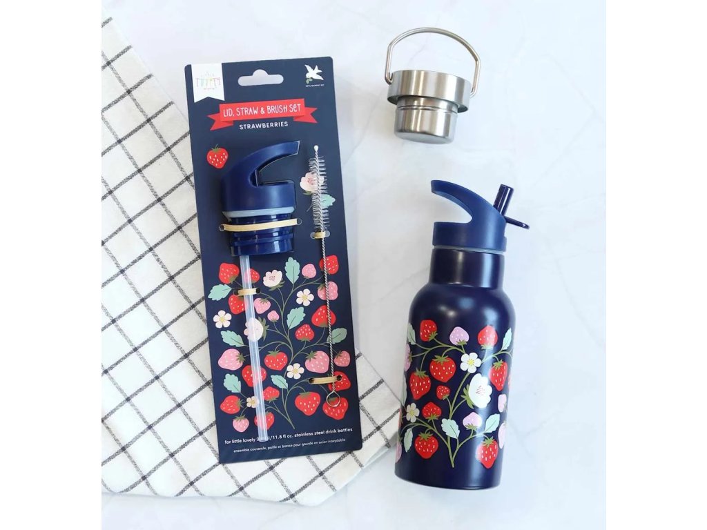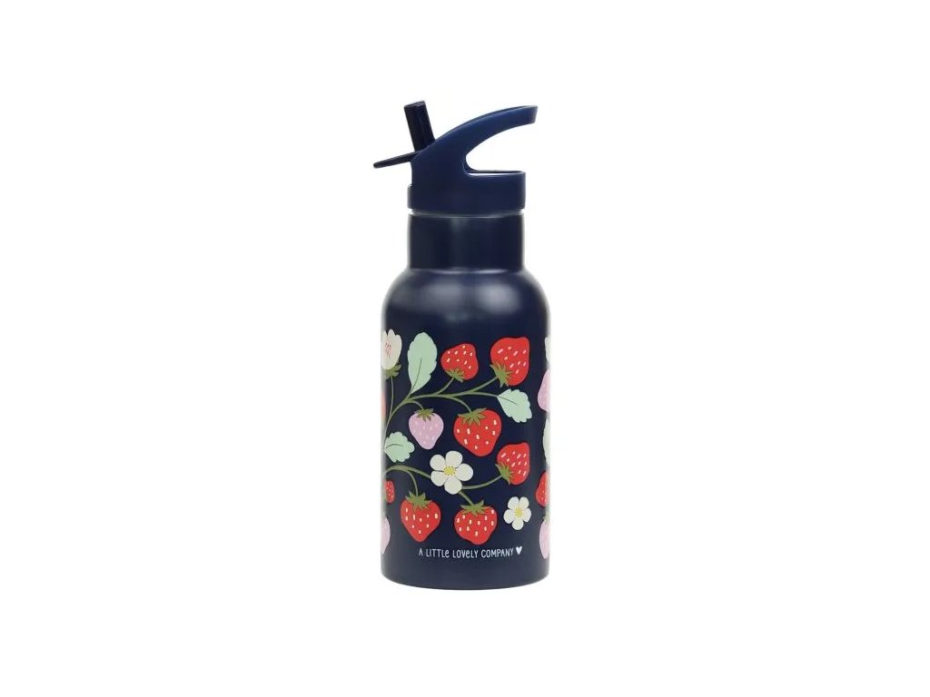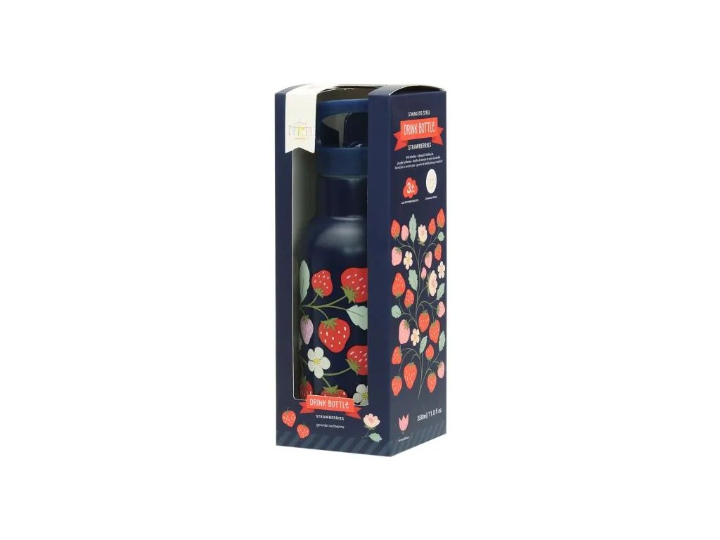 Această sticlă din oțel inoxidabil de culoare albastru închis, cu un motiv drăguț cu căpșuni, este ideală pentru aventurile școlare!Construcția cu pereți dubli menține băuturile răcoritoare, iar designul practic cu capac cu filet, gura de scurgere rabatabilă și paiul fac ca fiecare înghițitură să fie o plăcere. Pentru băuturile calde este disponibil un capac din oțel inoxidabil.