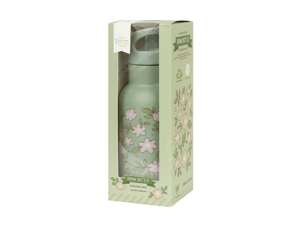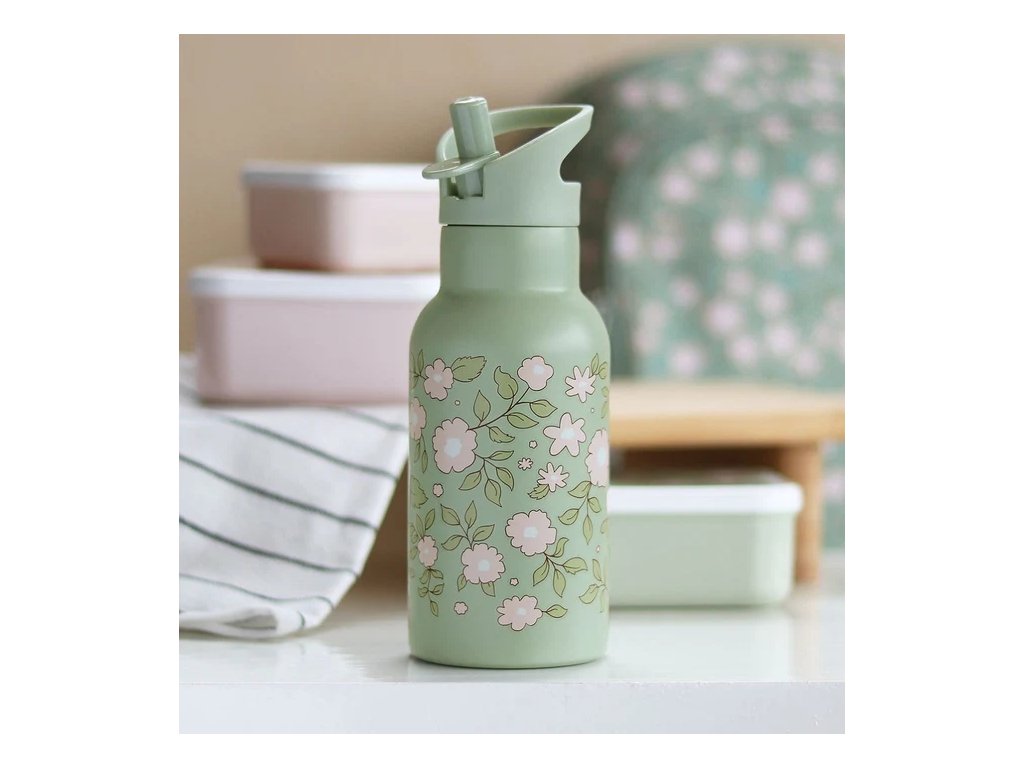 Această sticlă elegantă din oțel inoxidabil, de culoare verde salvie, menține băuturile reci mai mult timp – ideală pentru școală sau excursii!