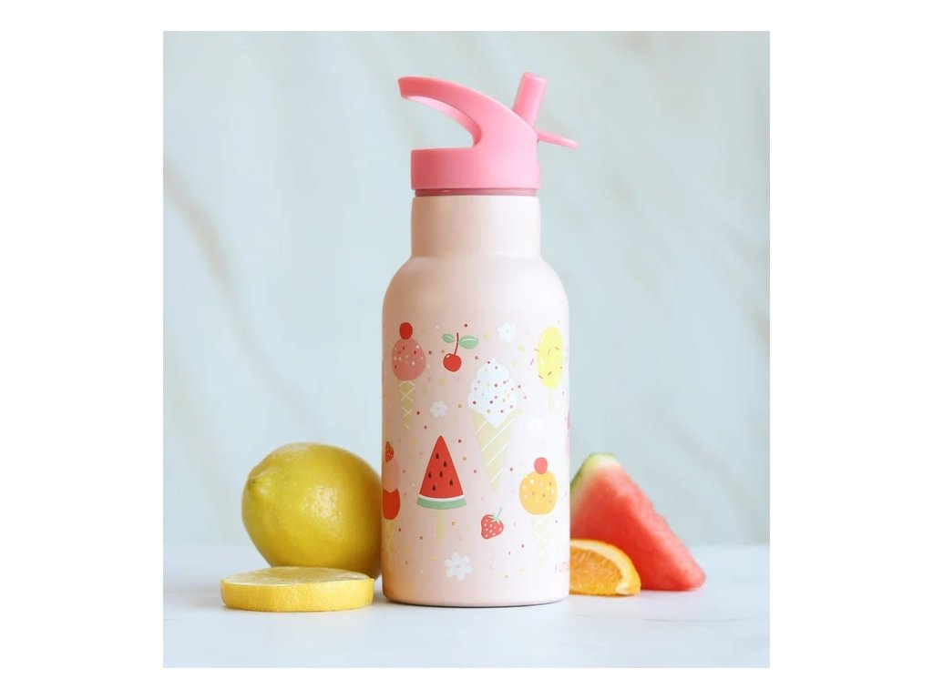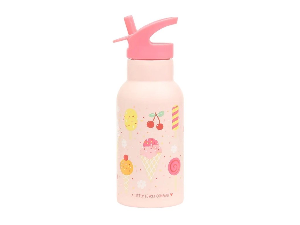 Adorabilă sticlă roz cu motiv de înghețată – perfectă pentru zilele de școală!