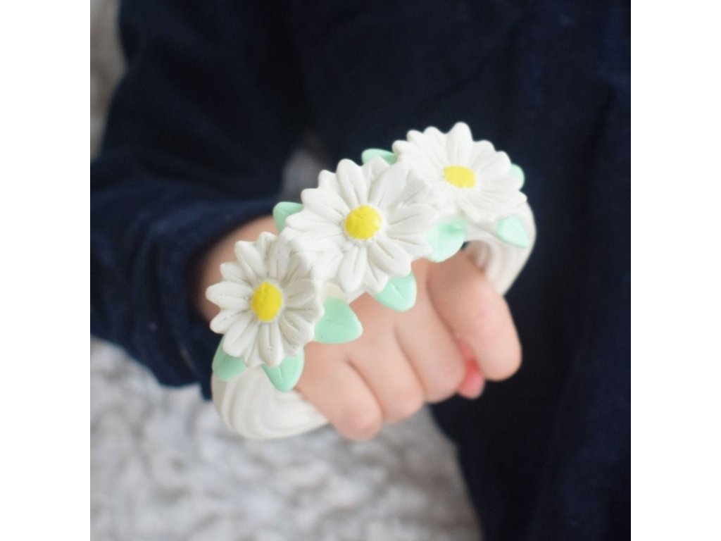 Jucărie moale de dentiție cu motiv margaretă Fabricat din cauciuc natural, va ajuta la calmarea bebelușului în timpul dentiției.