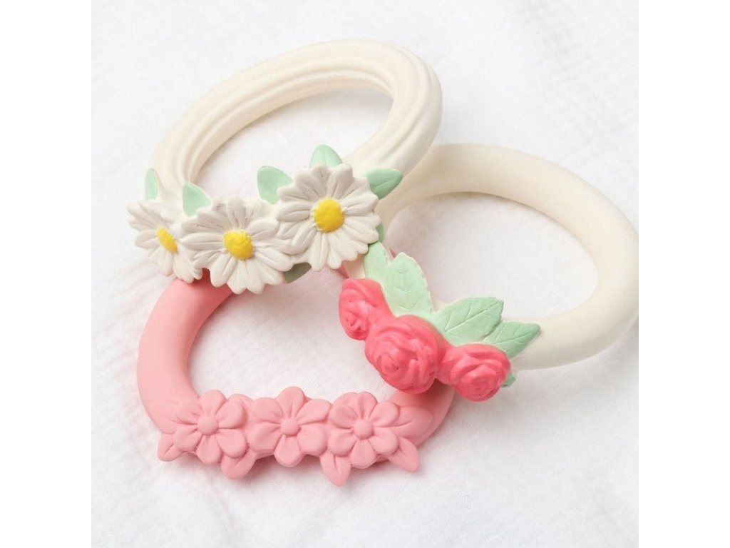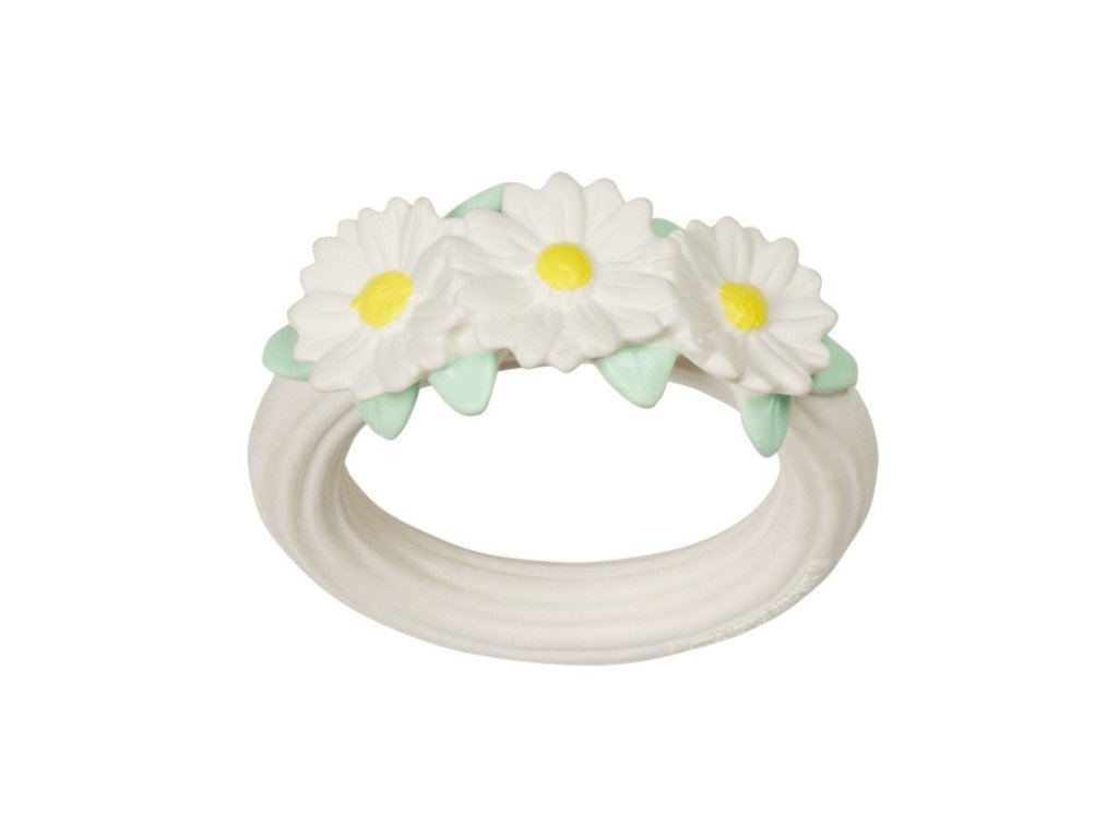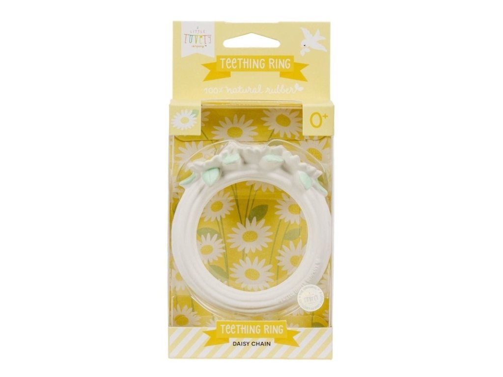 Acest jucărie de dentiție albă cu motiv margaretă este fabricată din cauciuc natural, ceea ce îl face moale, sigur și delicat pentru gingiile copiilor. Ajută la calmarea durerilor cauzate de erupția dinților, dezvoltând în același timp simțul tactil. Curățarea este ușoară – ștergeți-l cu o cârpă și apă cu săpun.