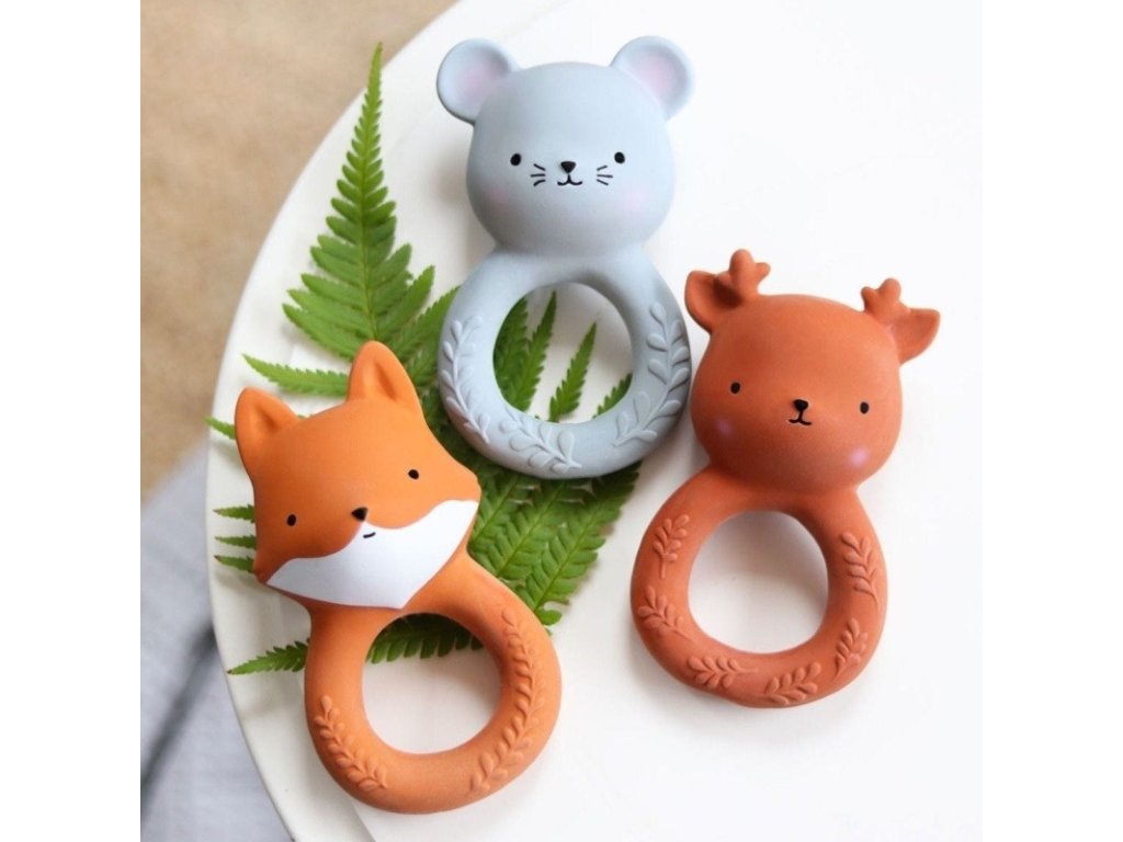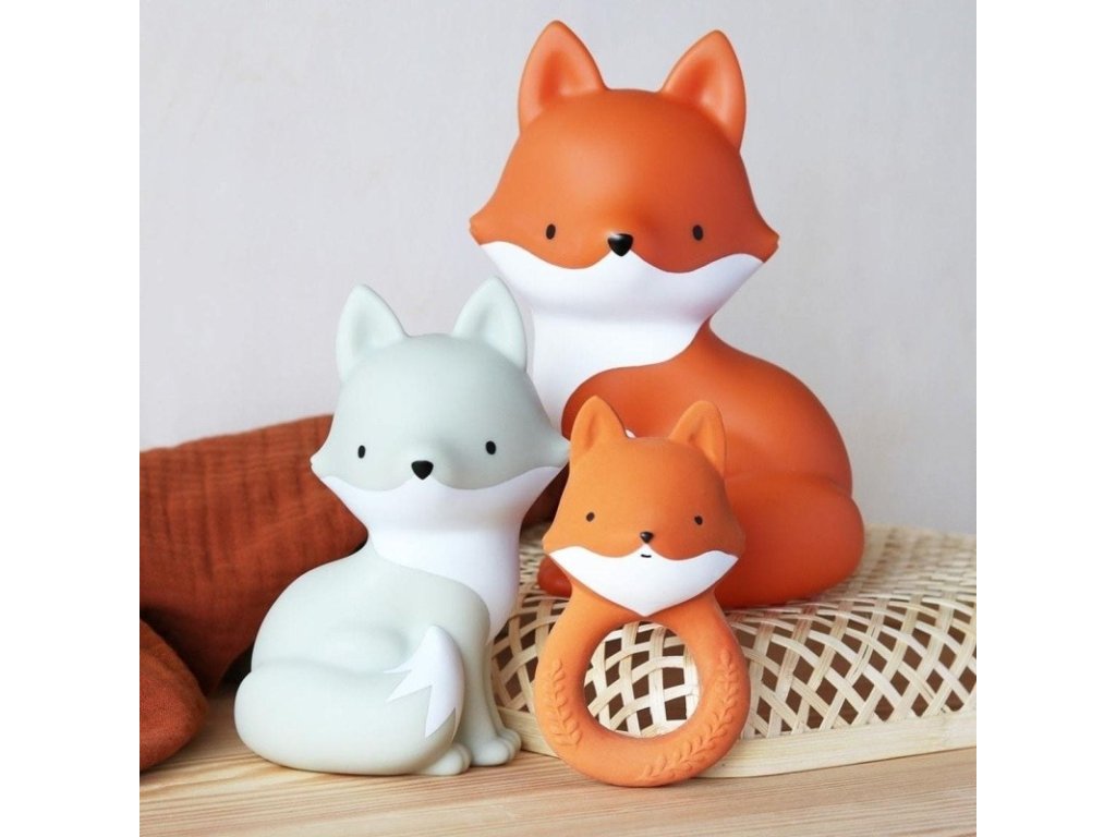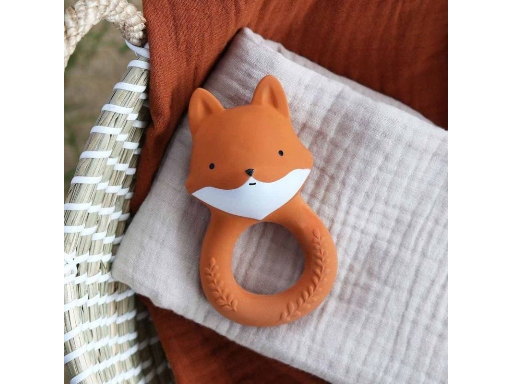 Jucărie de dentiție drăguță în formă de vulpe jucăușă din cauciuc natural, care va ajuta la calmarea bebelușului în timpul dentiției.