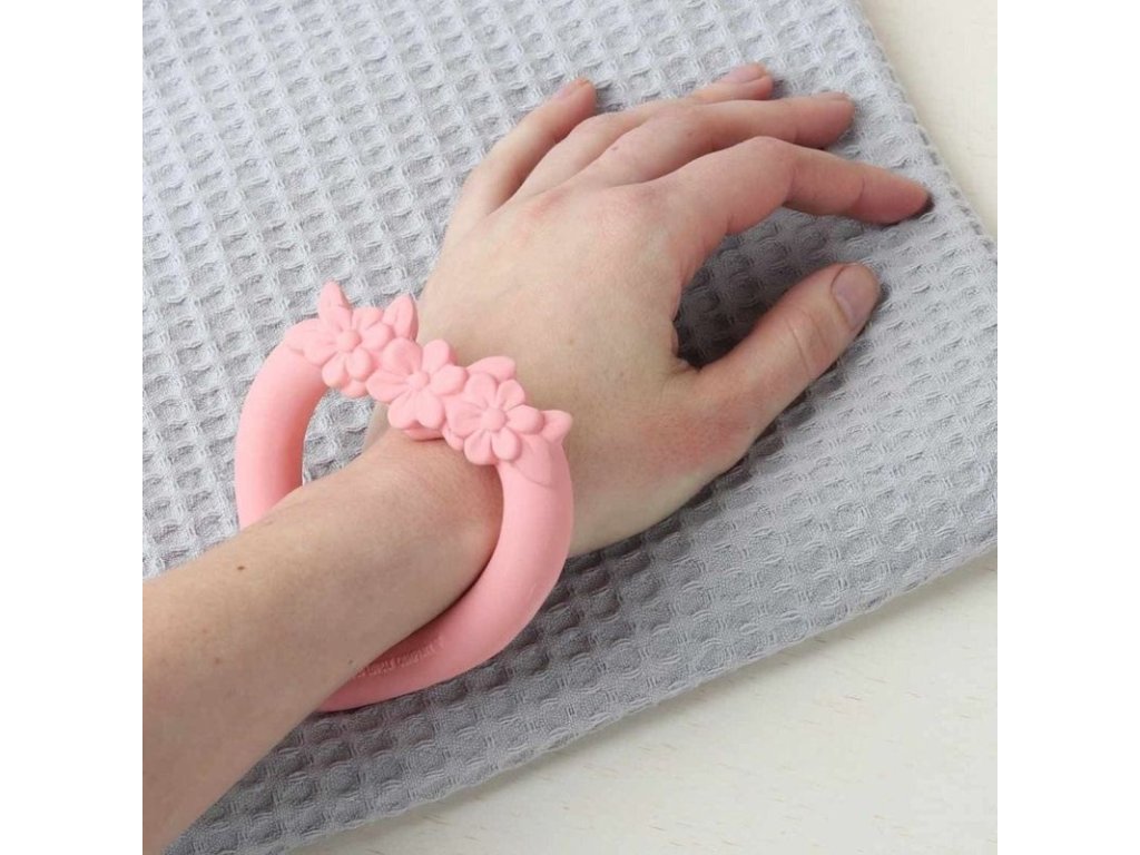Acest adorabil jucărie de dentiție roz din cauciuc natural calmează bebelușul în timpul dentiției și oferă un masaj delicat gingiilor. Este ușor, sigur și ideal pentru mâinile copiilor mici. Curățarea este foarte ușoară – ștergeți-l cu o cârpă și apă cu săpun! ?