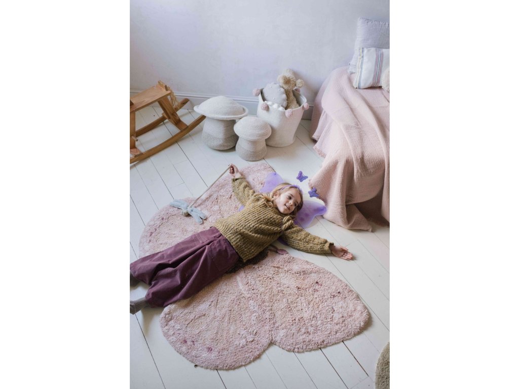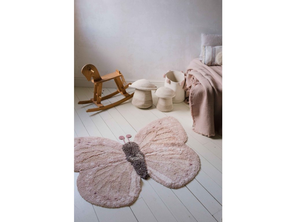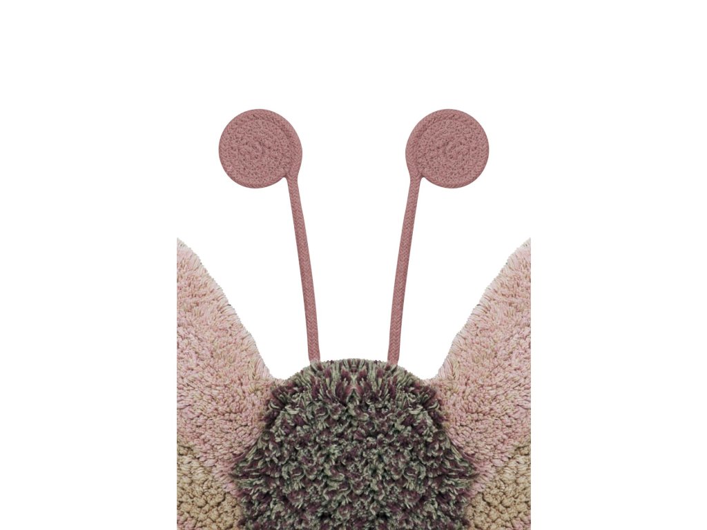 Explorați colecția noastră de covoare cu animale și alegeți-l pe cel preferat! Acest frumos covor în formă de fluture este realizat manual din bumbac moale și este ușor de spălat acasă. Este plin de mici detalii frumoase, inclusiv o paletă de opt nuanțe diferite de roz care se îmbină pentru a crea un fluture realist, și antene realizate cu grijă manual din cordon de bumbac, care pot fi îndepărtate cu ușurință de pe covor înainte de spălare.