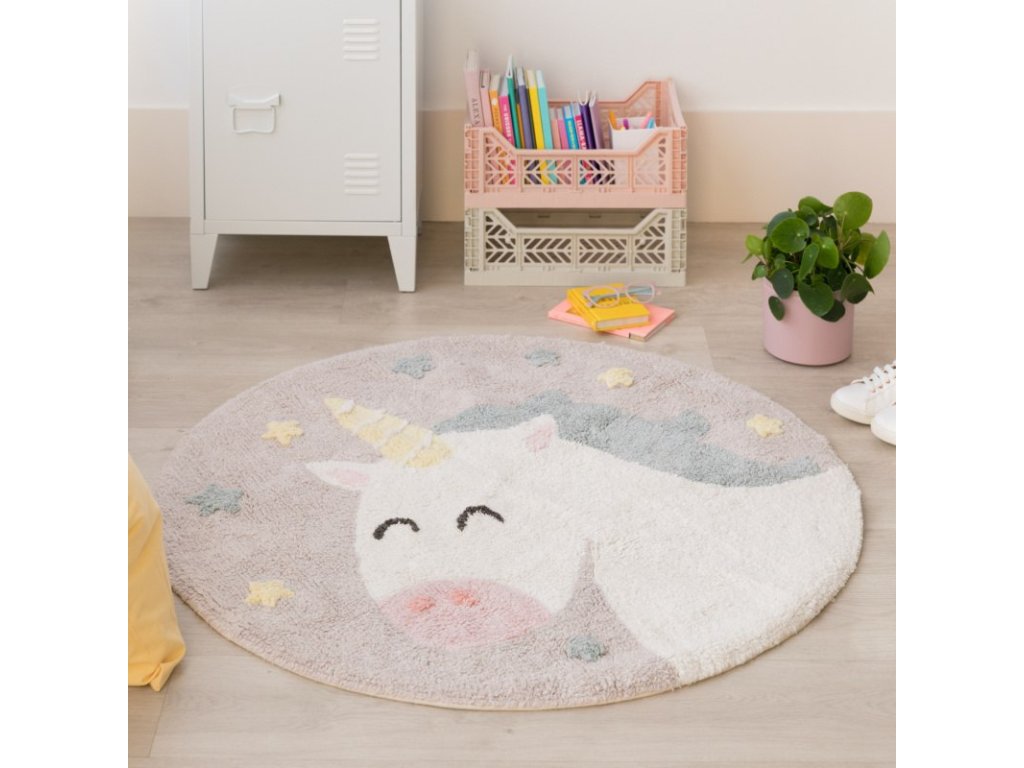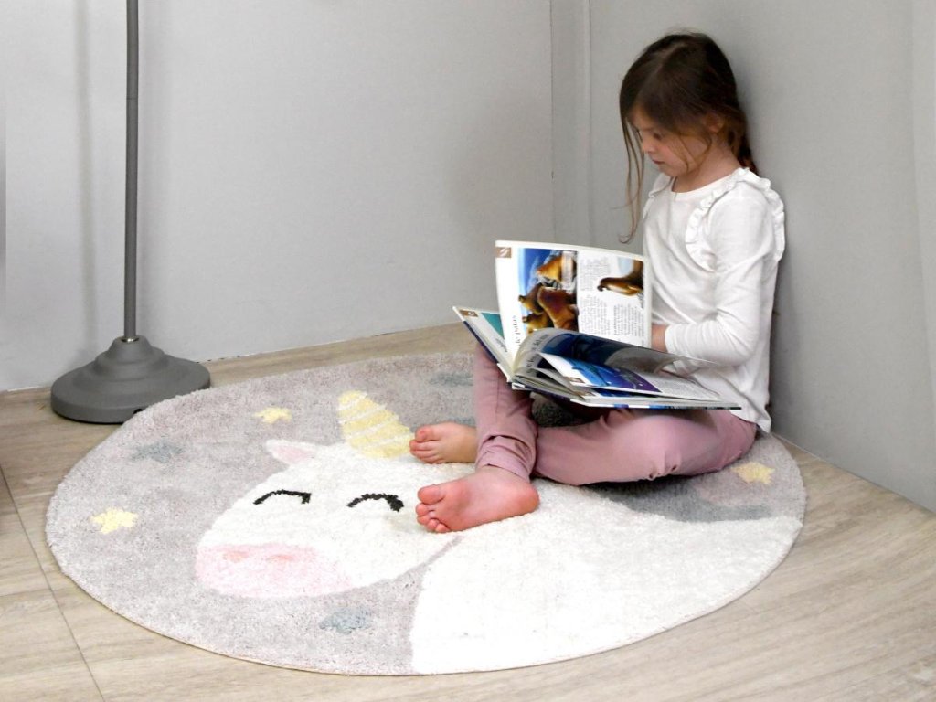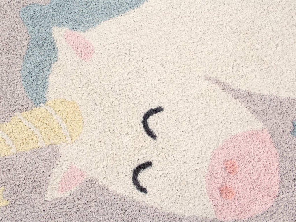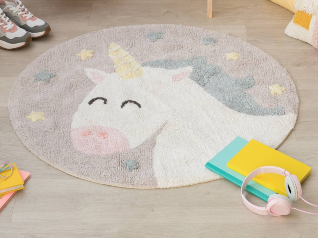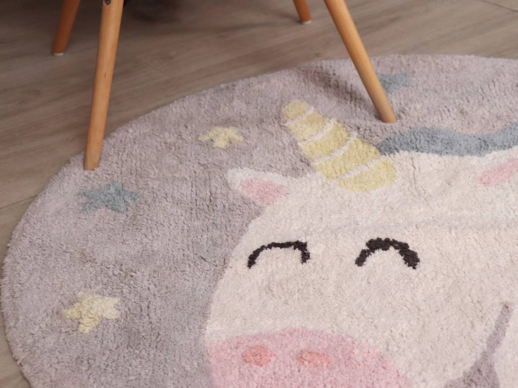 Acest covor rotund drăguț, cu motivul unicornului, simbolizează imaginația copiilor și le reamintește celor mici să creadă întotdeauna în ei înșiși și să-și îndeplinească visele.