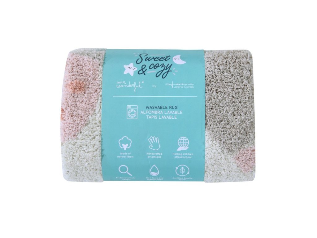 Covorul este moale și nu numai frumos, ci și practic, deoarece poate fi spălat la mașină, ceea ce orice mamă va aprecia. Datorită întreținerii ușoare, micuții tăi neastâmpărați pot chiar să verse pe el fără griji. Dimensiune: 100 cm 100 cm