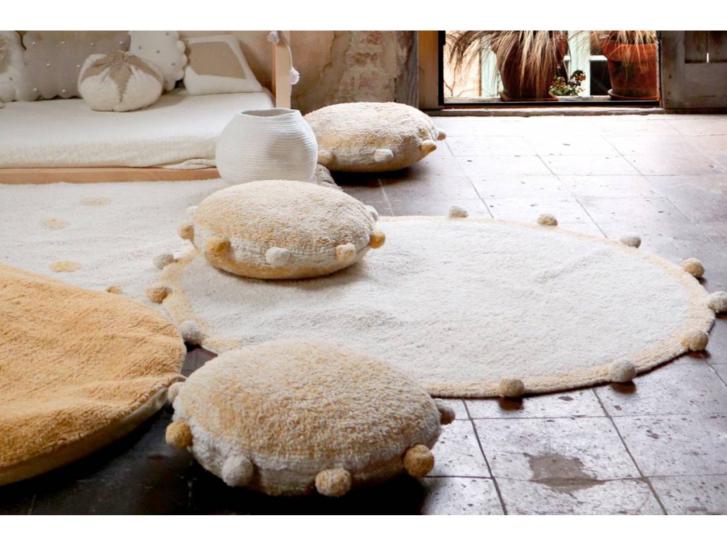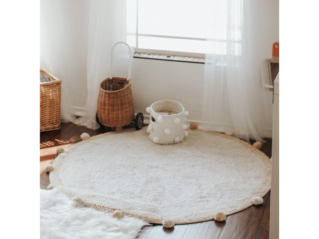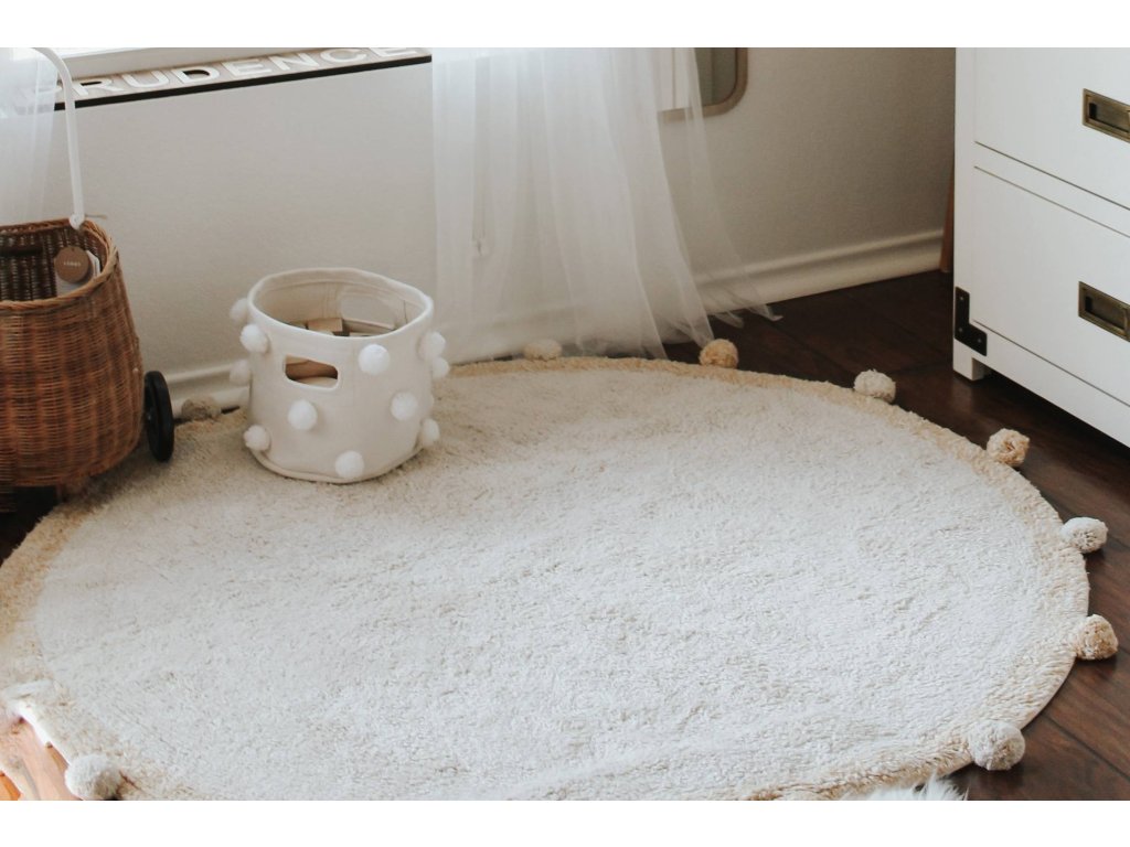 Acest covor rotund pentru copii, cu un design simplu în formă de bule, nu este doar frumos, ci și practic, deoarece poate fi spălat la mașina de spălat, ceea ce orice mamă va aprecia. Datorită întreținerii ușoare, micuții tăi neastâmpărați pot vărsa în siguranță pe el.