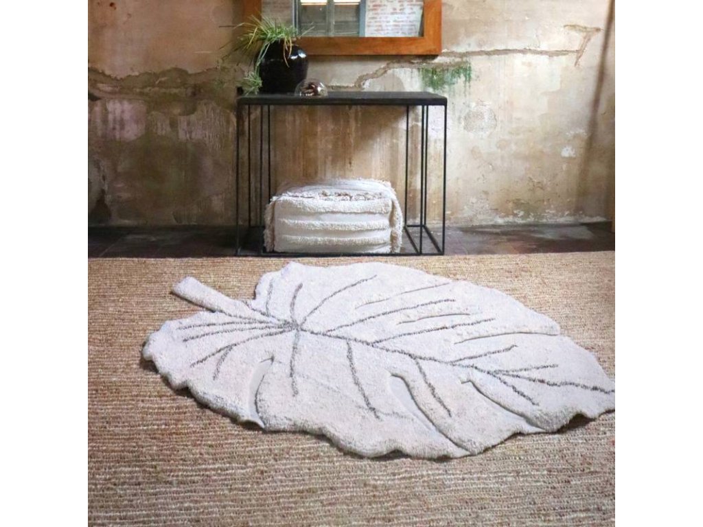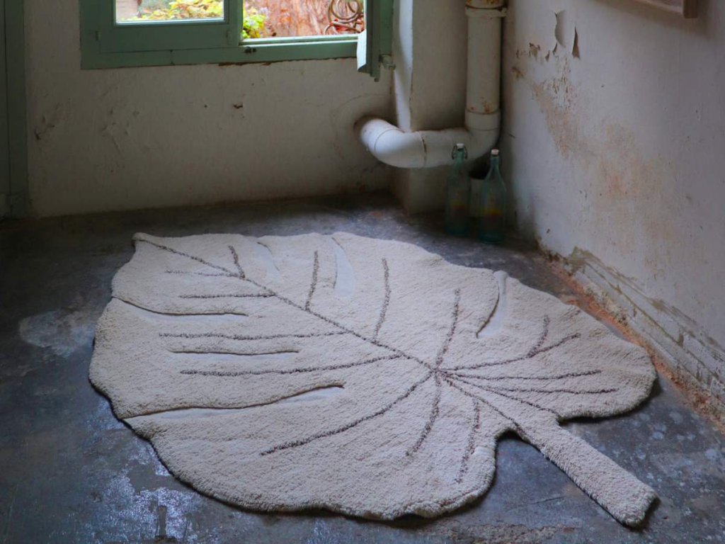 Covor pentru copii în formă de frunză de monstera, plantă foarte populară în interioarele moderne. Va aduce o notă de verdeață în camera copilului și va înviora minunat spațiul, dar datorită versatilității acestui covor îl puteți așeza fără probleme și în living, dormitor sau hol.