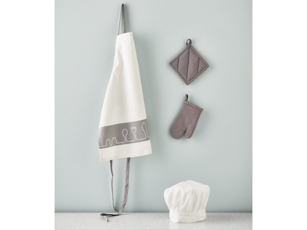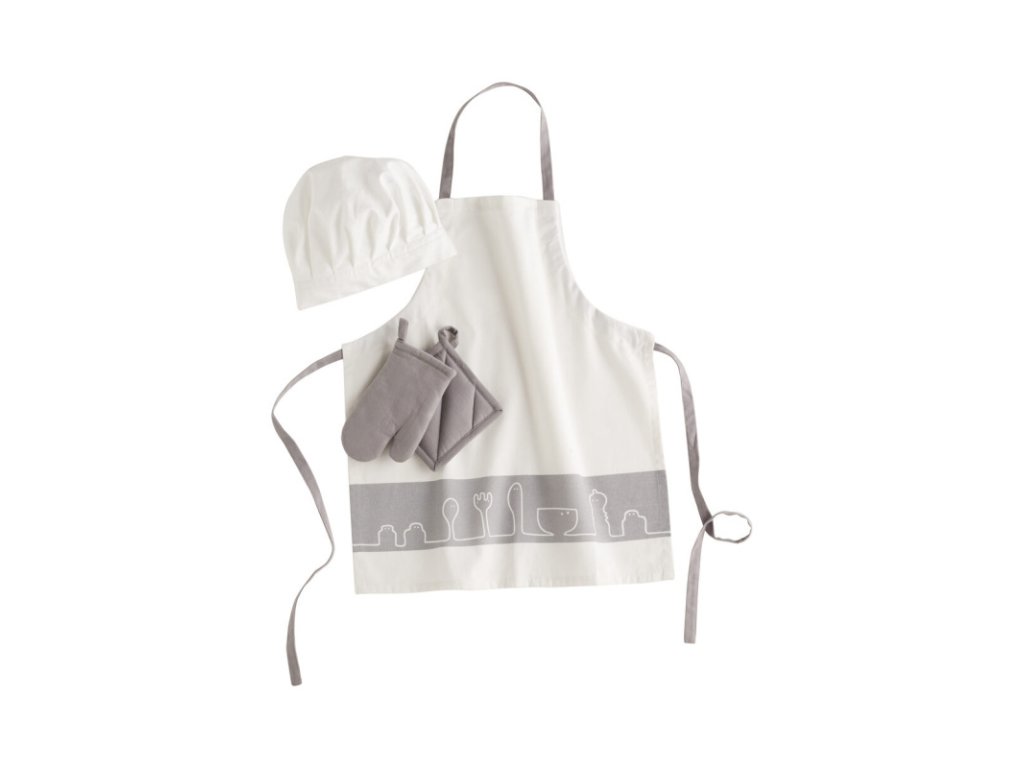 Un plus excelent pentru orice bucătărie de joacă! Acest set textil este fabricat din bumbac organic și include un șorț, o pălărie de bucătar, o mănușă de bucătărie și o mănușă de cuptor. Șorțul ajută la protejarea hainelor mici în bucătăria de jucărie. Mănușa de bucătărie și mănușa pentru vase sunt ideale pentru a scoate mâncarea din cuptorul de jucărie. Șorțul este decorat cu un imprimeu amuzant cu domnul Pepper și prietenii lui din bucătărie.