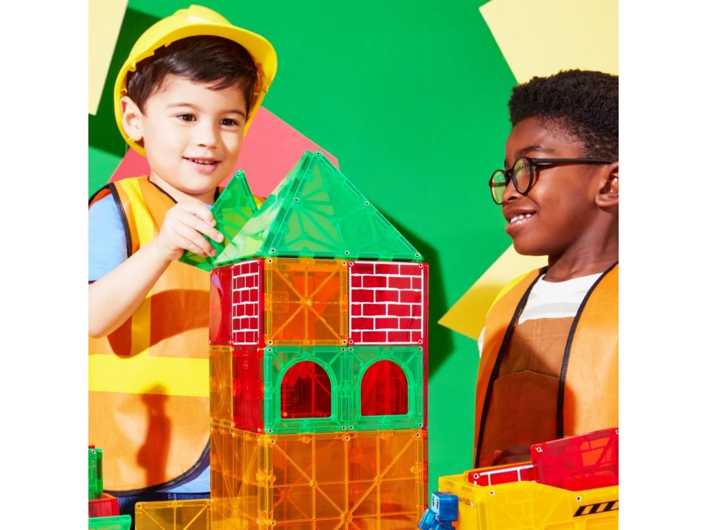 Construcțiile magnetice Magna-Tiles au fost create conform viziunii unui profesor japonez de matematică. Cu acest set, poți construi cu ușurință minunate structuri 3D, de la piramide, căsuțe și garaje până la turnuri destul de înalte.