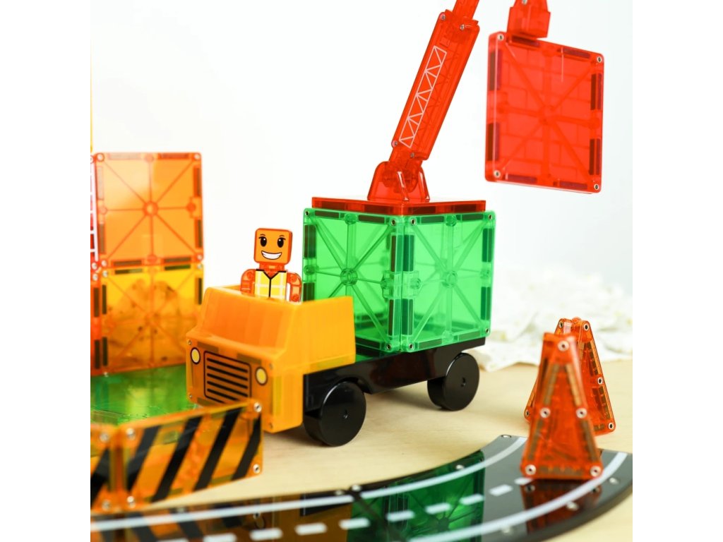 "Setul de construcție magnetic Builder XL Trucks include o macara, un camion și 50 de piese pentru proiecte de construcție nelimitate!