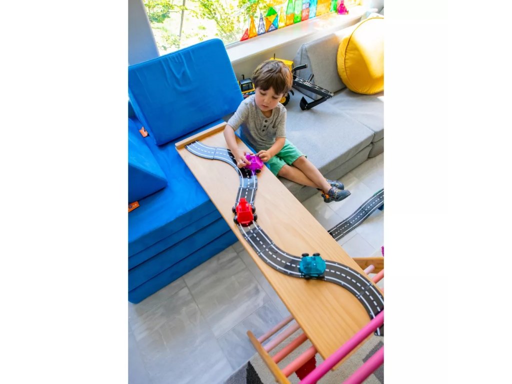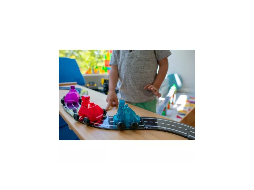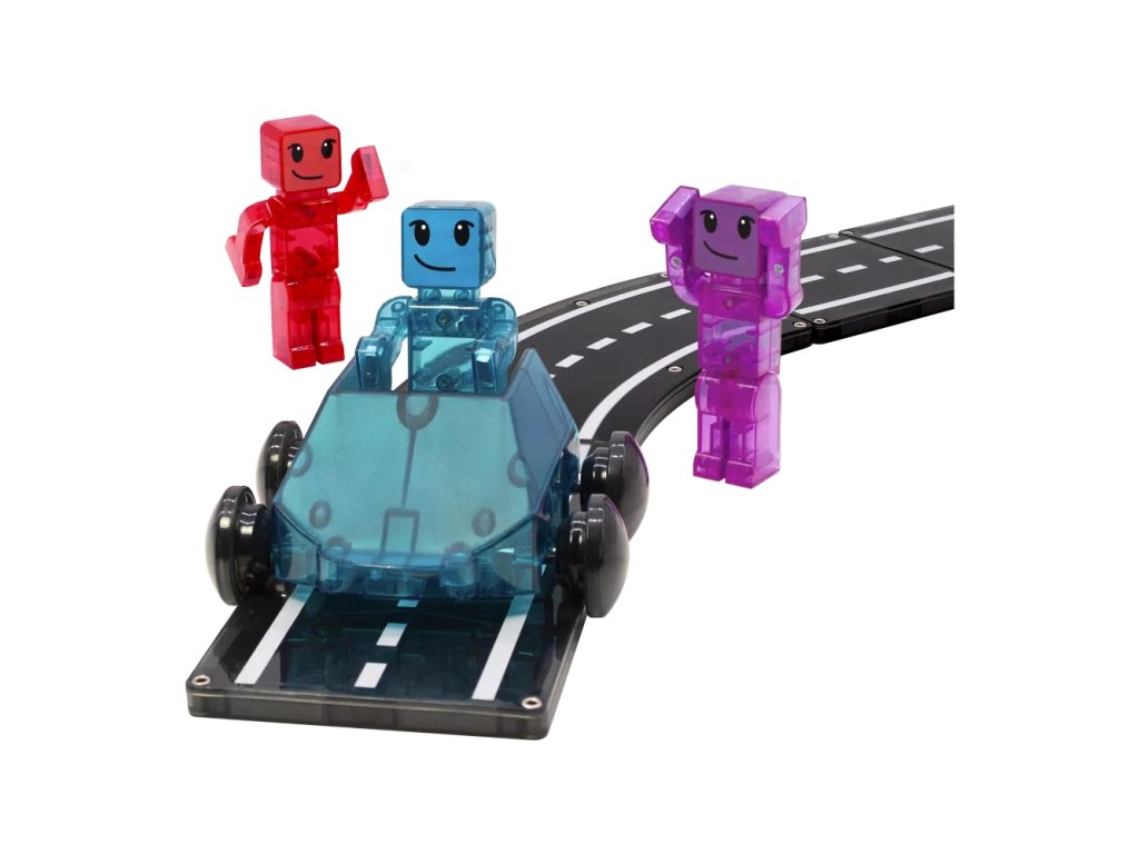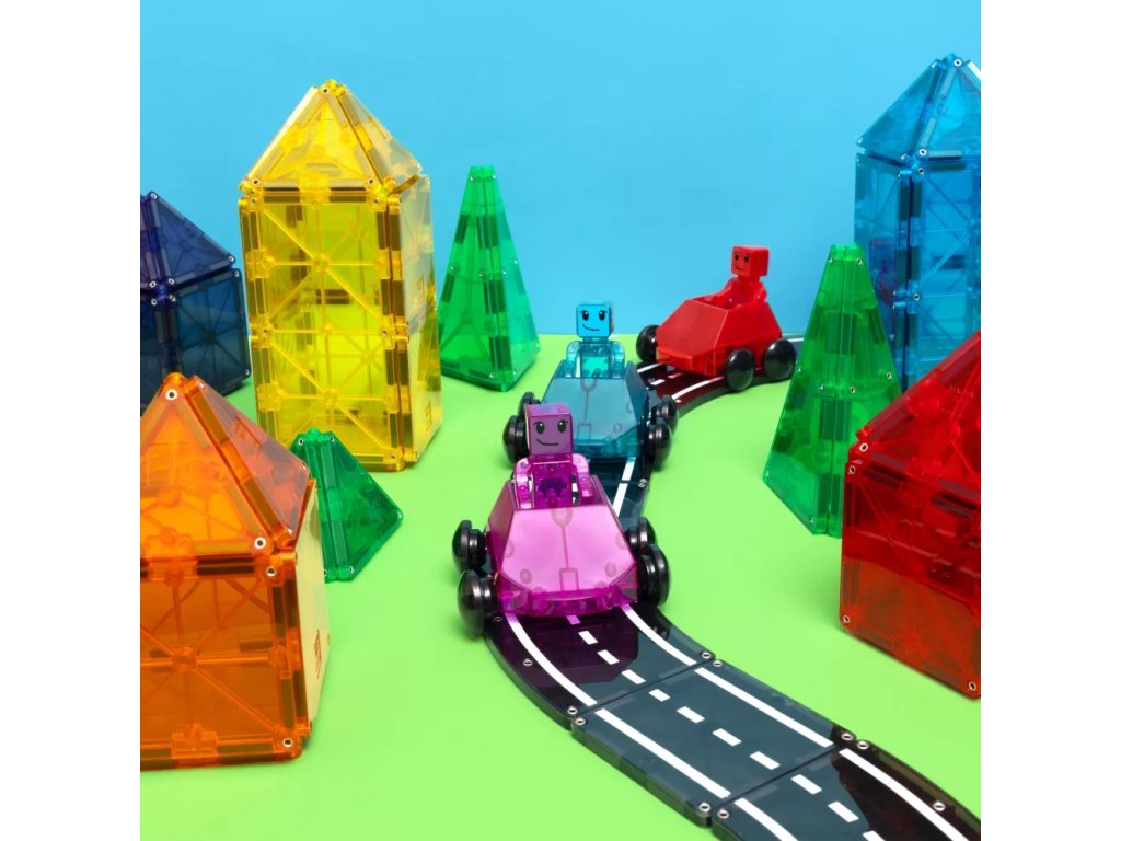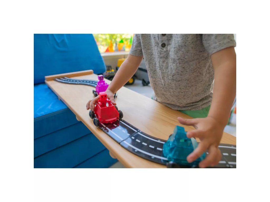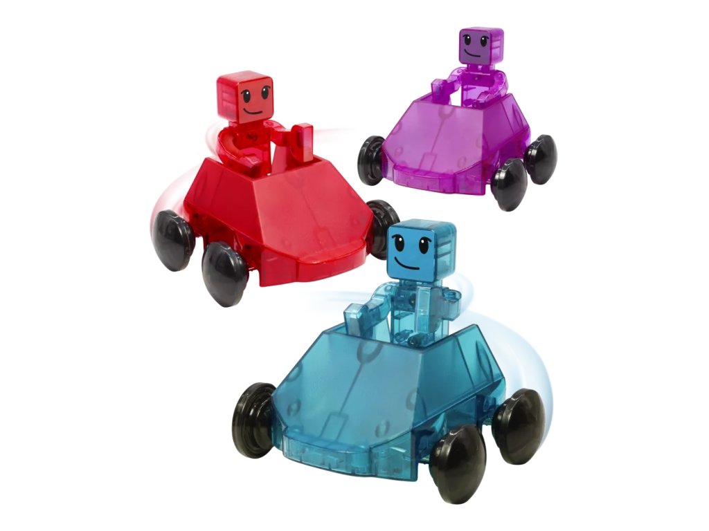 Trei, doi, unu, start! Intrați în lumea Magna-Tiles cu Dashers – primele figurine și vehicule complet magnetice care oferă noi posibilități de distracție. Aceste vehicule se deplasează cu ușurință pe plăci pătrate tradiționale, rampe și drumuri și, datorită roților speciale, rulează lin de-a lungul marginilor. Cu o frână încorporată pentru controlul vitezei și figurine cu mâini, picioare și capete magnetice, acestea sunt complet compatibile cu toate celelalte seturi Magna-Tiles® – gata pentru provocări de curse fără sfârșit!