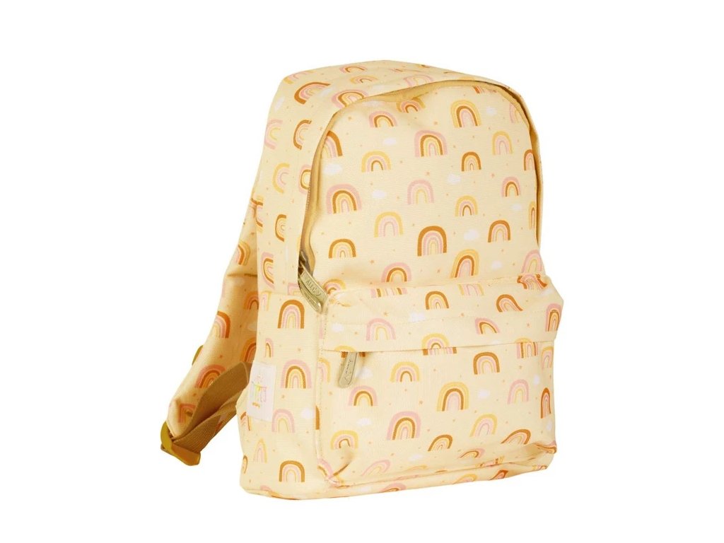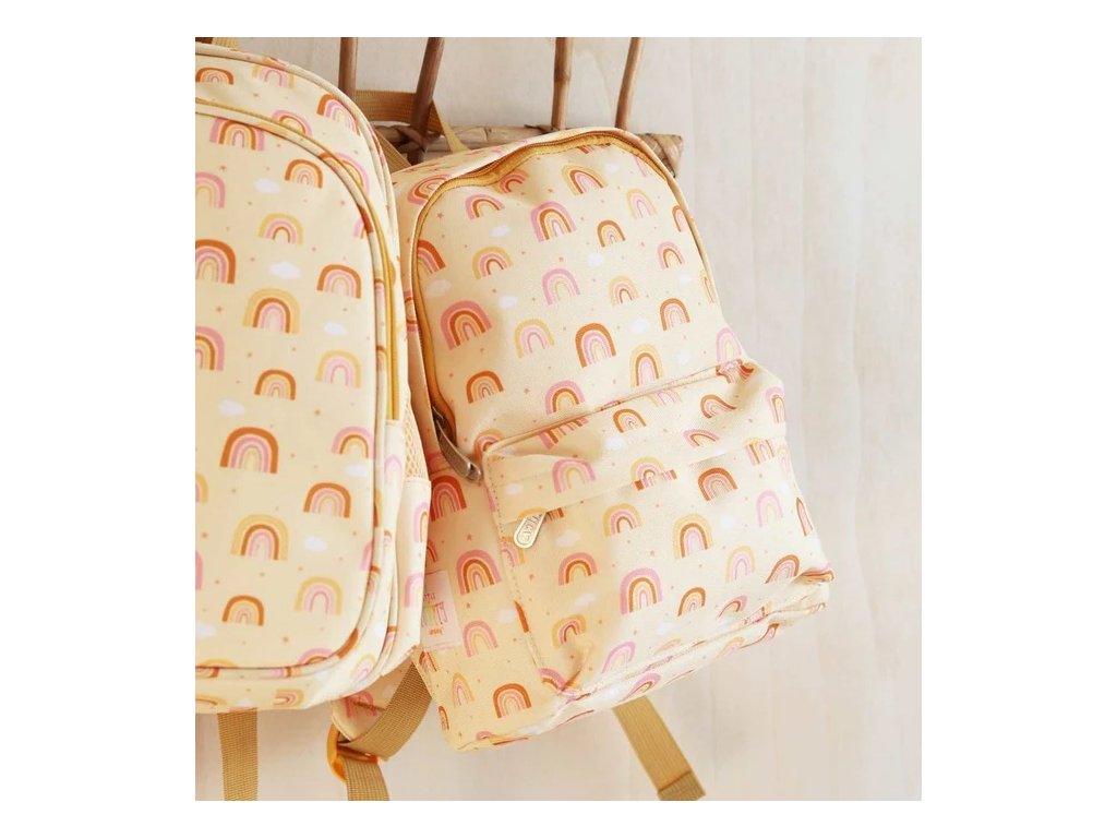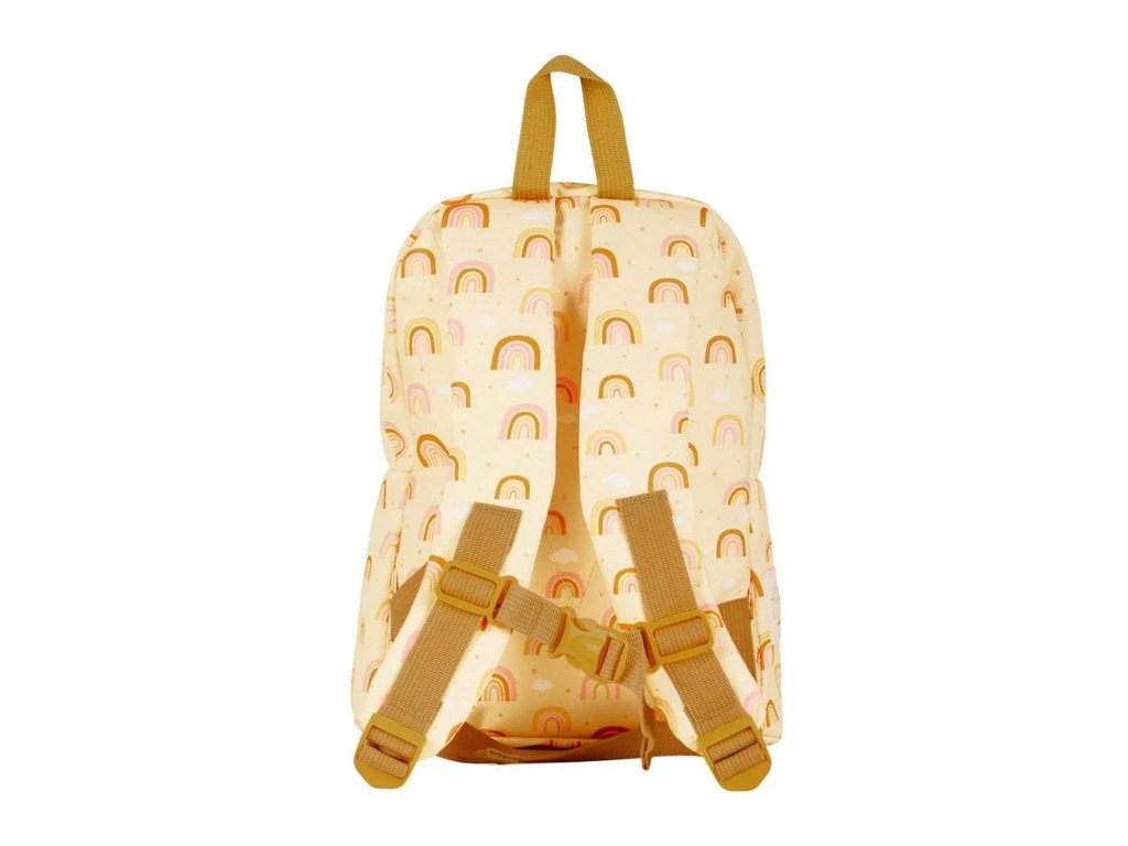 Acest rucsac adorabil în culoarea galben vanilie, cu un motiv bogat în curcubeie, va înveseli fiecare zi de școală și grădiniță! Are un compartiment principal spațios pentru toate comorile tale, un buzunar practic cu fermoar în față și curele căptușite cu curea pentru piept, pentru a asigura confortul chiar și atunci când ești în mișcare.