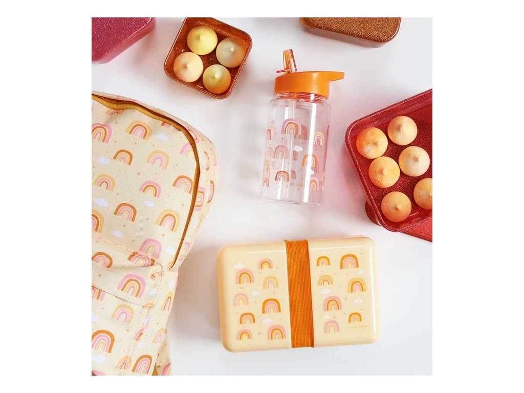 Completează setul școlar cu un penar, o cutie pentru prânz și o sticlă asortate, cu același motiv, pentru a crea un set jucăuș în culorile curcubeului! ?