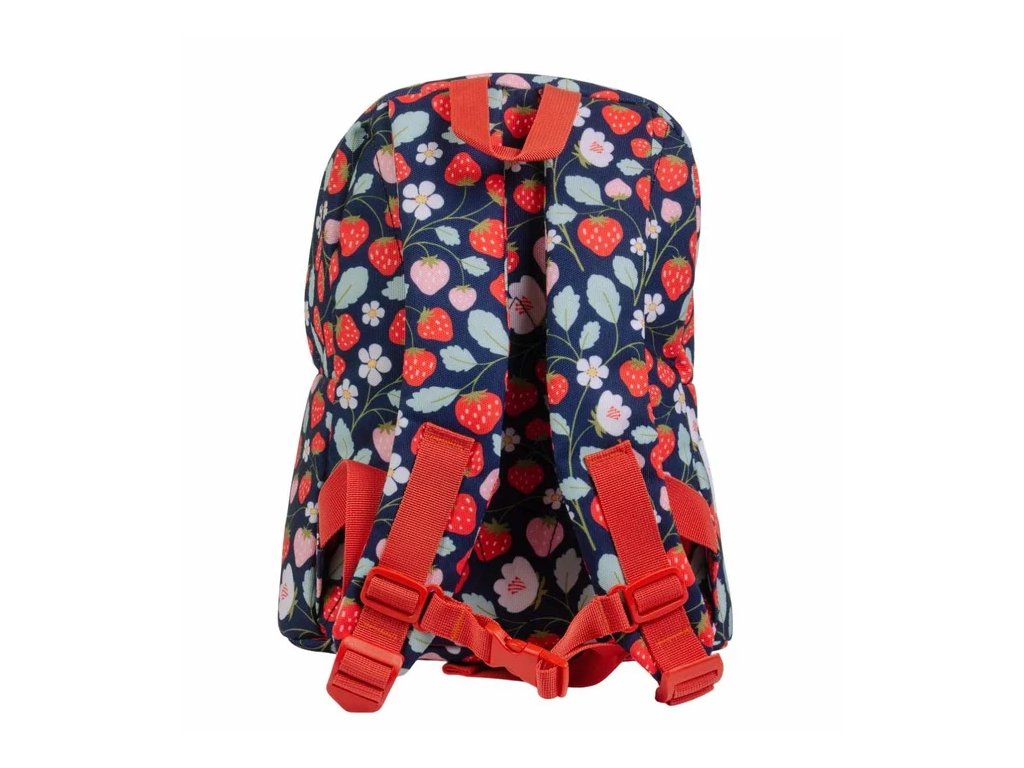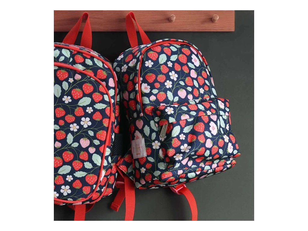 Acest rucsac albastru închis cu căpșuni este perfect pentru școală și grădiniță! Datorită curelei pentru piept, bretelelor căptușite și compartimentelor practice, va însoți cu fidelitate copilul dumneavoastră în fiecare zi. ?