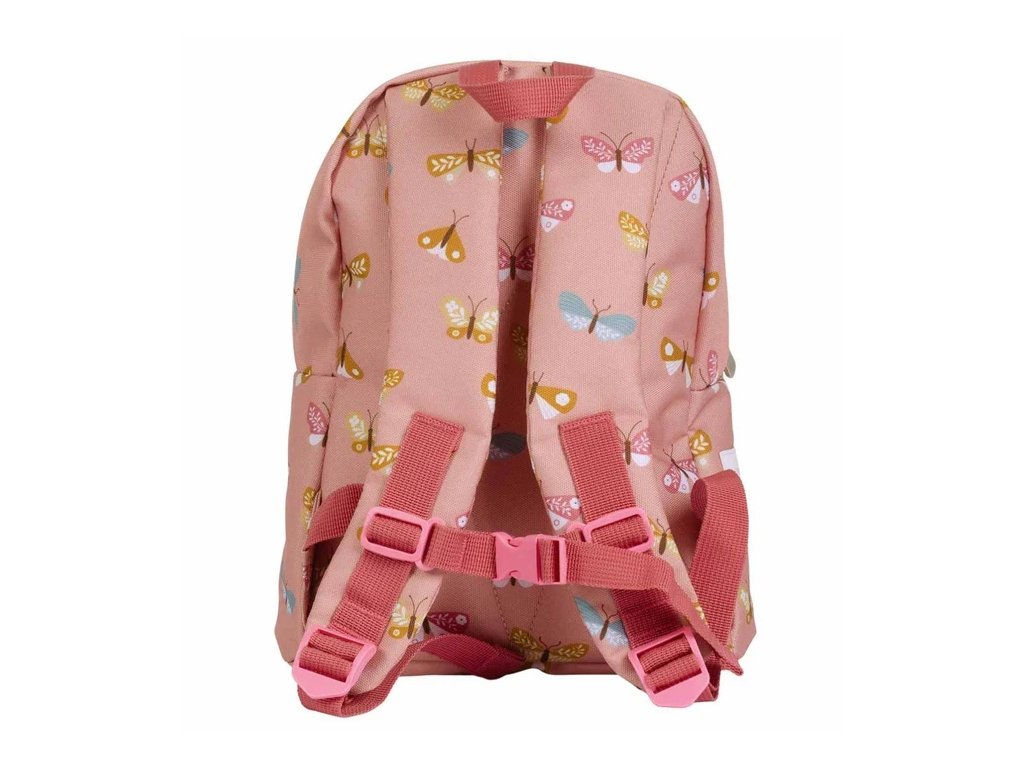 Rucsac roz drăguț cu fluturi – companionul ideal pentru grădiniță și școală. Compartimentul principal spațios și buzunarul frontal cu fermoar pot adăposti o cutie pentru prânz, o sticlă și obiecte mici, în timp ce curelele căptușite pentru umeri și curea pentru piept asigură un transport confortabil, fără alunecări. ?