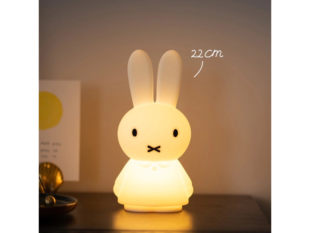 Miffy Shines 22 cm – o lampă wireless drăguță care va lumina orice spațiu cu lumina sa moale și farmecul său atemporal.