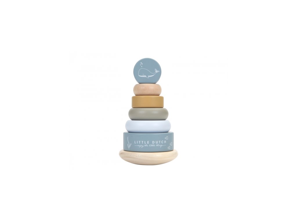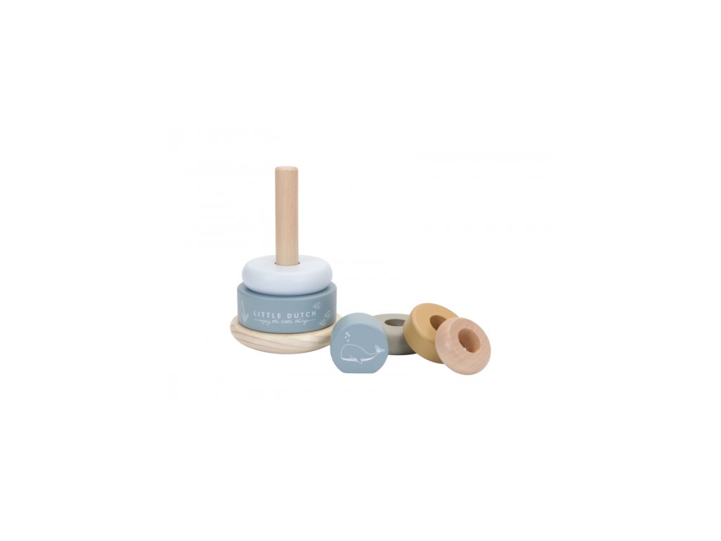 Inele de stivuit din lemn - Blue Ocean | LITTLE DUTCH