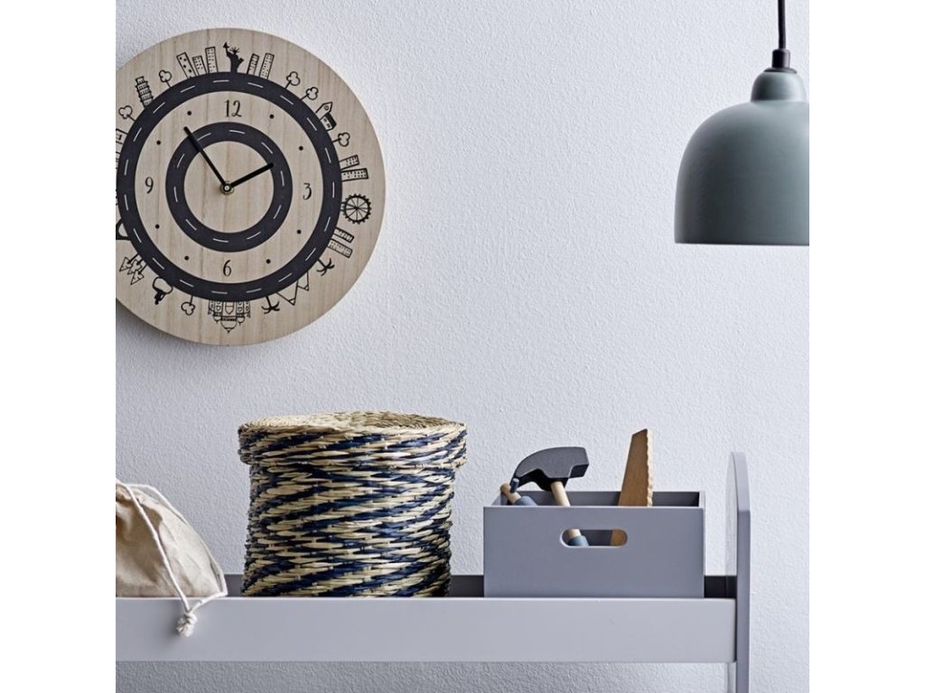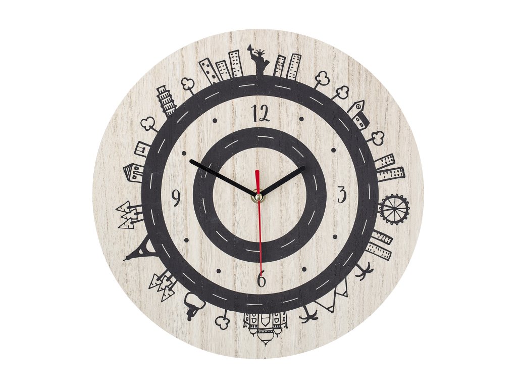 Aceste ceasuri de perete pentru copii, cu un motiv urban și un design minimalist, se vor potrivi în orice interior pentru copii, datorită culorilor neutre naturale și negre.
