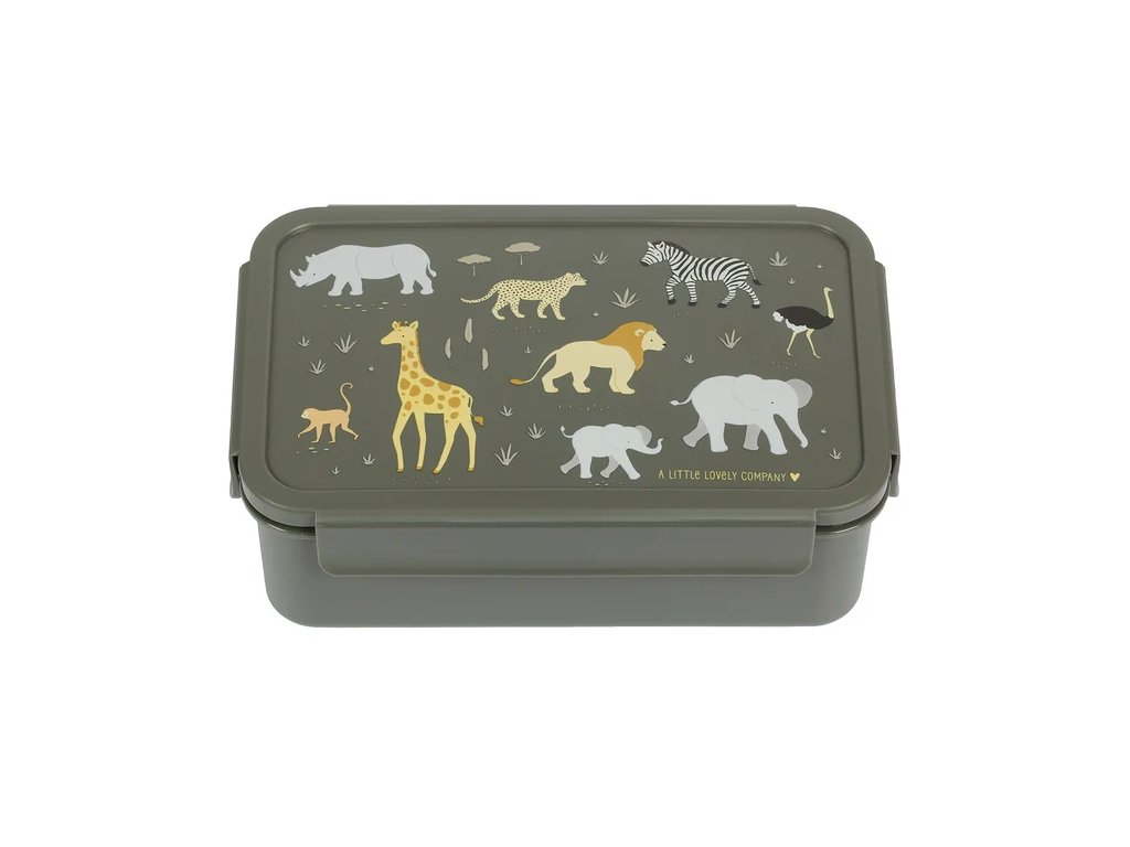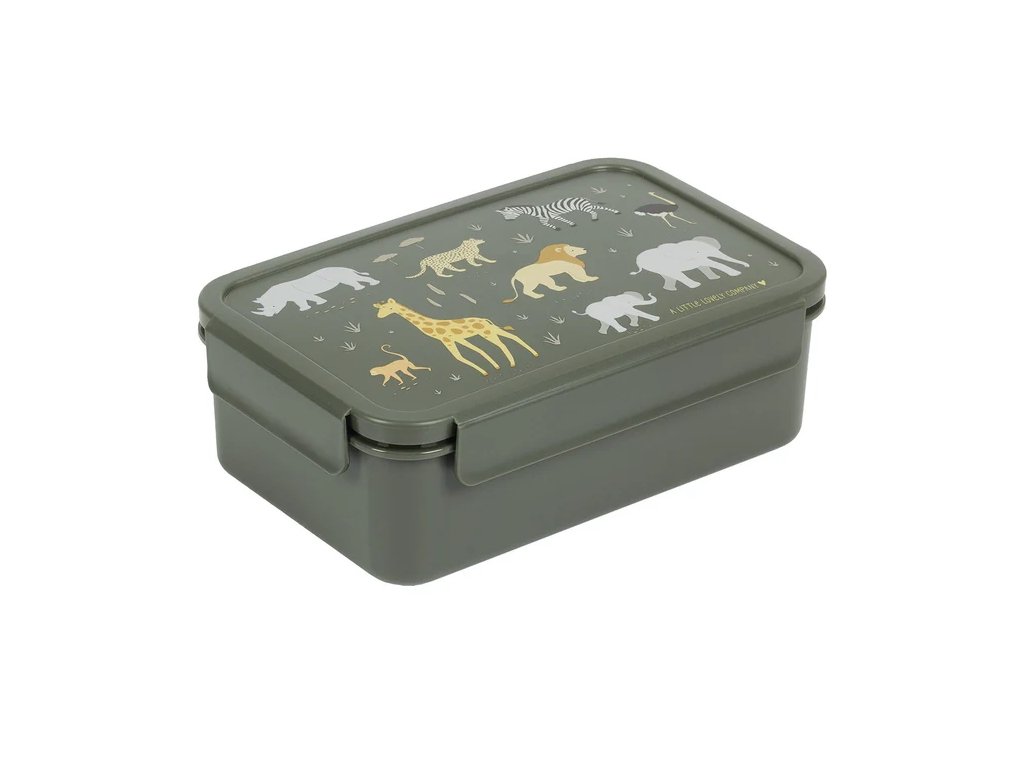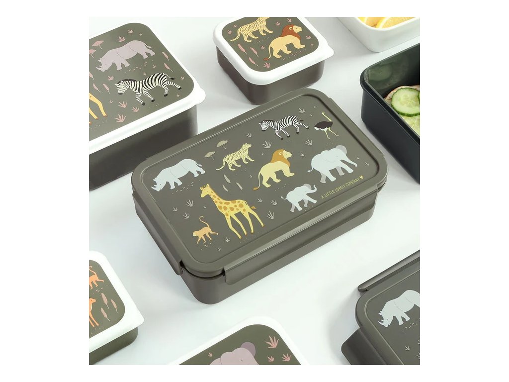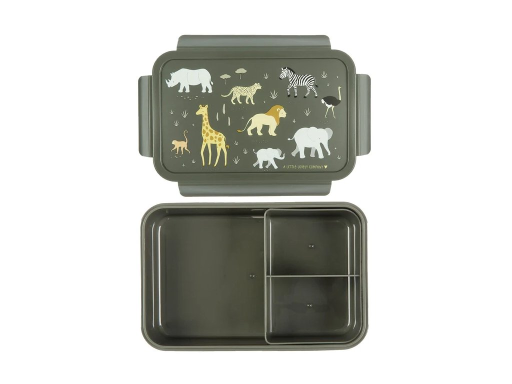 Această cutie bento spațioasă, de culoare gri, cu animale drăguțe din savană, este perfectă pentru un prânz gustos și variat la școală sau în excursie. Capac etanș Click & și compartimentul detașabil pentru bento, cu două secțiuni, păstrează mâncarea proaspătă și organizată! ?