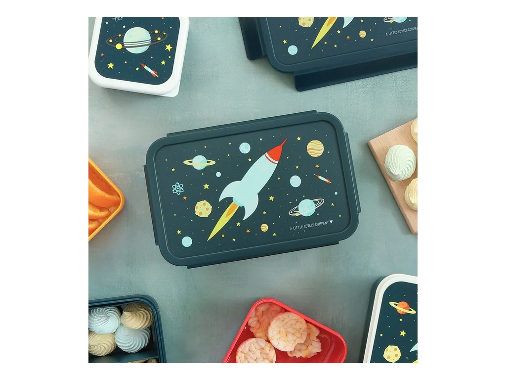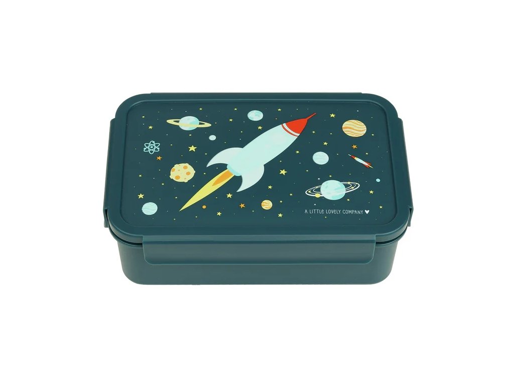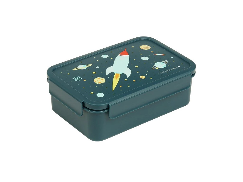 Această cutie bento spațioasă, de culoare albastru închis, cu tematică spațială, este perfectă pentru micii exploratori! Capacul etanș Click & Close și compartimentul practic pentru bento păstrează prânzul proaspăt și perfect organizat – companionul ideal pentru școală și excursii.