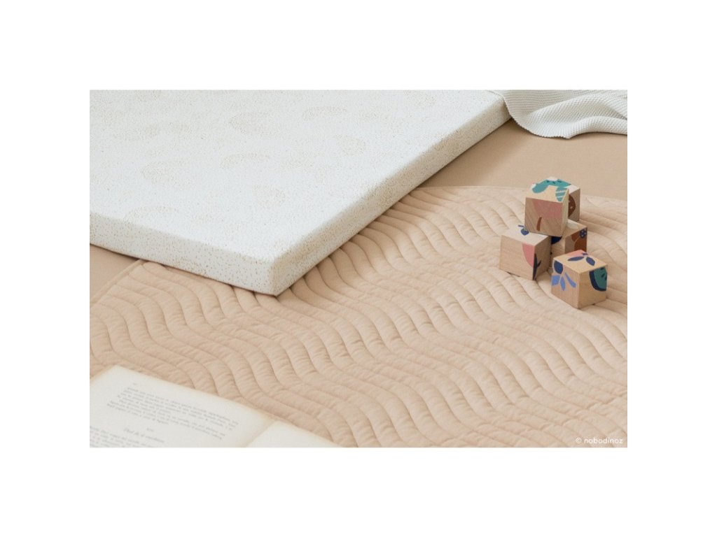 Covorașul rotund se potrivește perfect cu baldachinul de aceeași culoare, dar poate fi folosit și separat, ca covoraș de joacă. Datorită culorii neutre nude, poate fi combinat cu ușurință cu alte accesorii ale mărcii Nobodinoz.