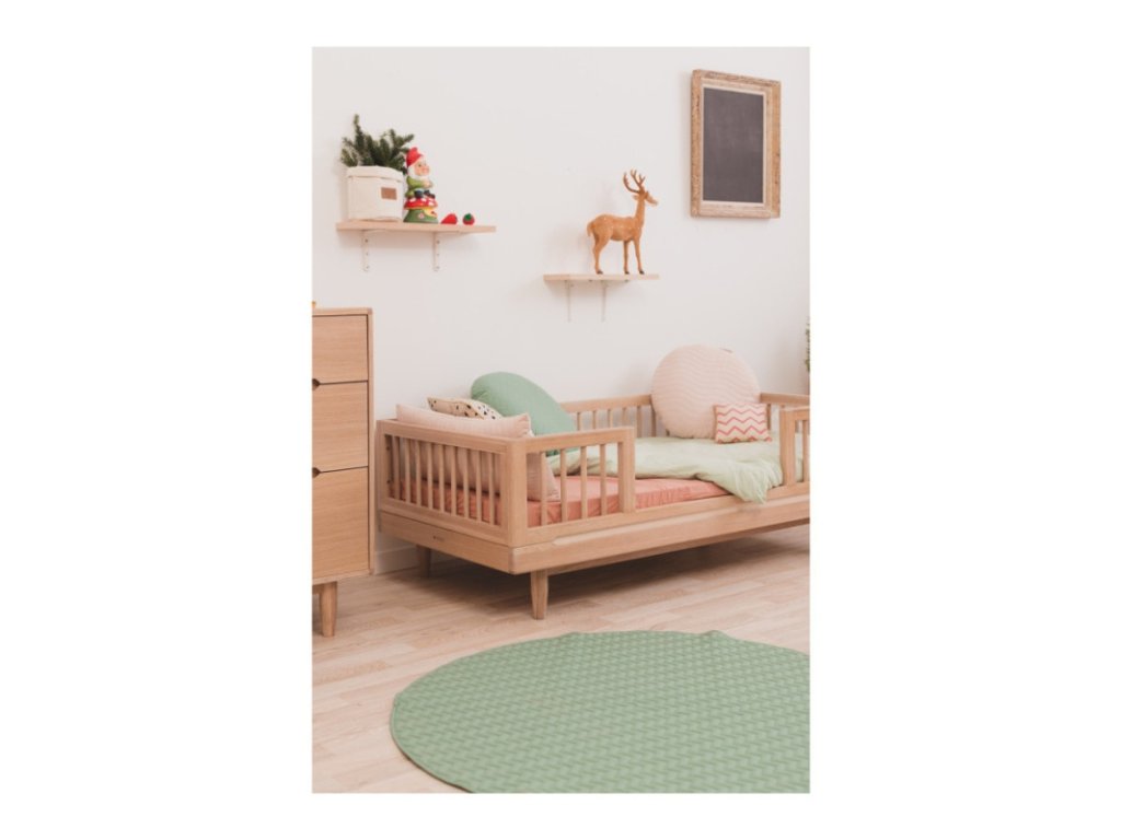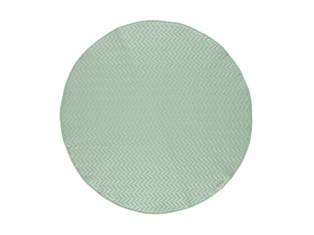 Acest covoraș rotund de joacă în culoarea verde pastel se potrivește perfect cu baldachinul de aceeași culoare, dar poate fi folosit și separat, ca covoraș de joacă. Se poate combina perfect cu alte accesorii de la Nobodinoz.