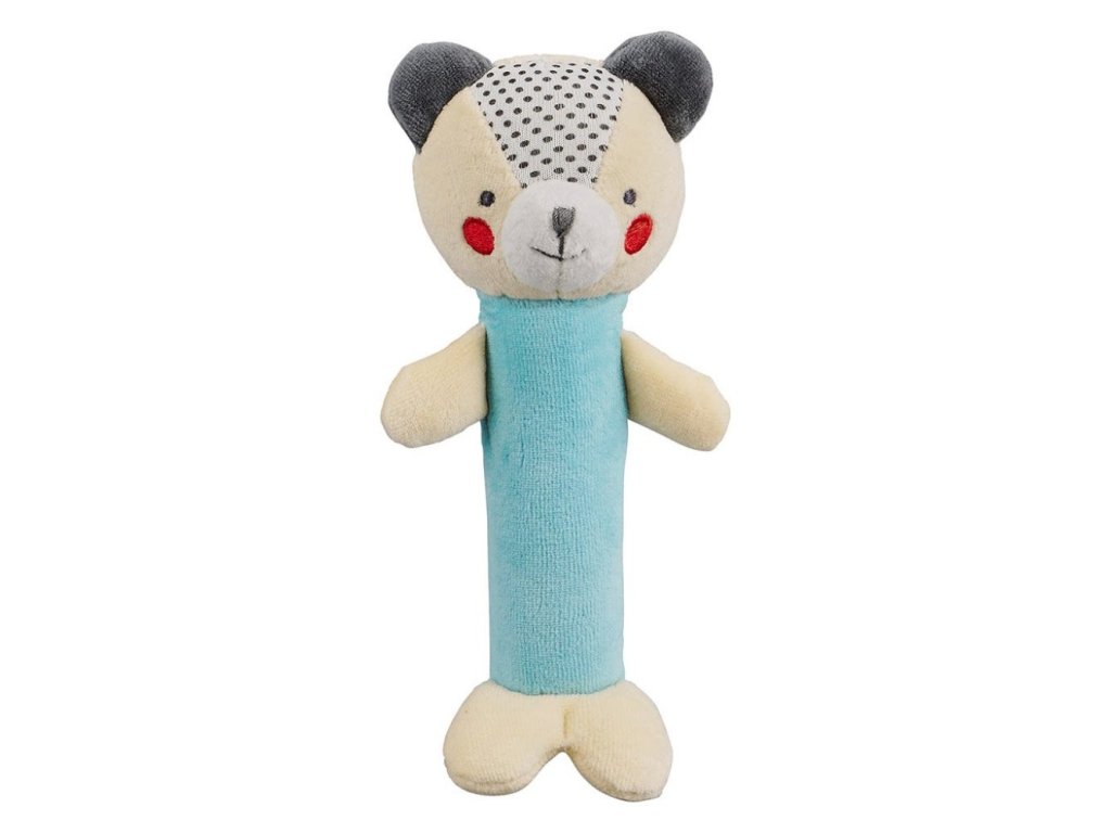 Jucărie extra moale, de îmbrățișat, cu capul unui urs zâmbitor. Un companion excelent pentru odihna de după-amiază a copilului dumneavoastră. Modelele și culorile contrastante ale ursulețului stimulează dezvoltarea senzorială a copiilor, iar nodul din colțul păturicii poate fi ținut în mână sau mușcat. Jucăria este colorată cu vopsele ecologice, pe bază de plante. Dimensiuni: 36 x 45 cm Material: 100% bumbac organic 100% bumbac organic. Vârsta recomandată: Potrivit de la naștere. Producător: Petitcollage. p;