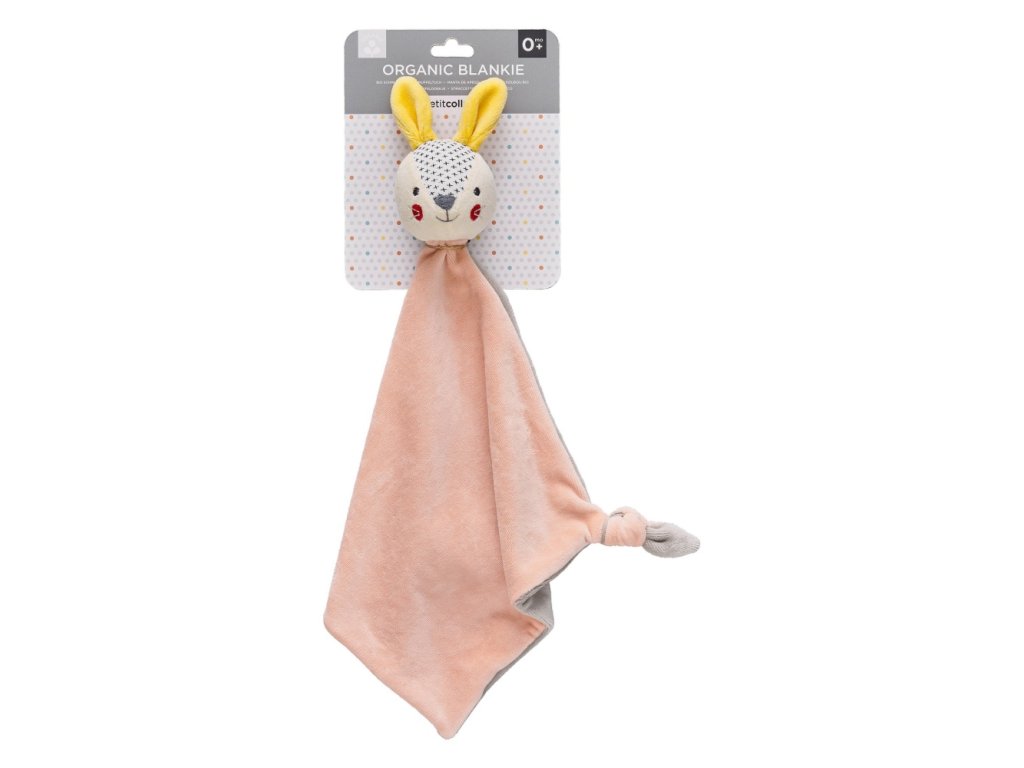 Păturică de atașament extra moale, din pluș, cu capul unui iepuraș zâmbitor. Un prieten grozav pentru odihna de după-amiază a copilului dumneavoastră. Modelele și culorile contrastante ale iepurașului stimulează dezvoltarea senzorială la copii, iar nodul de pe colțul păturicii poate fi ținut sau mușcat. Jucăria este colorată cu vopsele ecologice pe bază de plante.