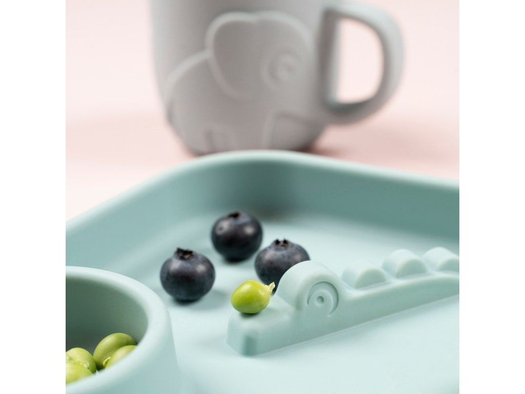 Peekaboo, e ora mesei! Farfuria divizată „Peekaboo” este ideală pentru copiii mofturoși. Separați alimentele și lăsați zebra amuzantă și crocodilul cool să trezească curiozitatea micuțului dvs. în timp ce se uită din farfurie. Farfuria drăguță pentru copii este fabricată din silicon alimentar, care este rezistent la spargere și are caracteristici antiderapante și ușor de prins. Farfuria poate fi spălată în mașina de spălat vase și este potrivită pentru utilizare în cuptor, cuptor cu microunde și congelator.