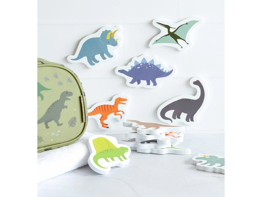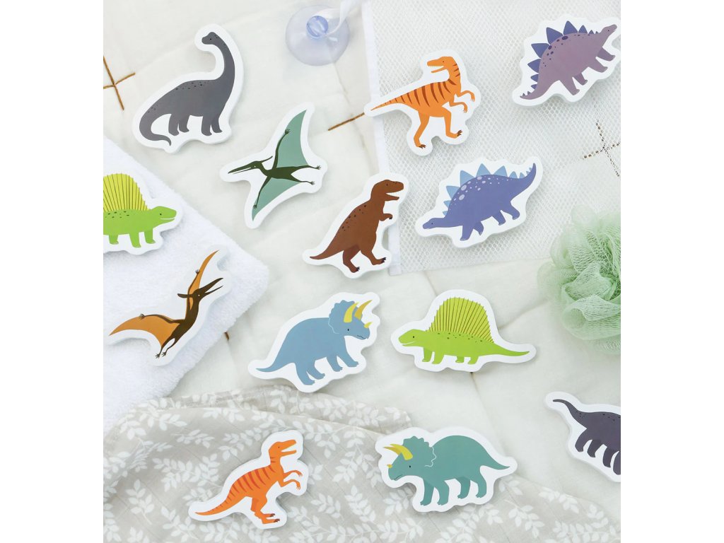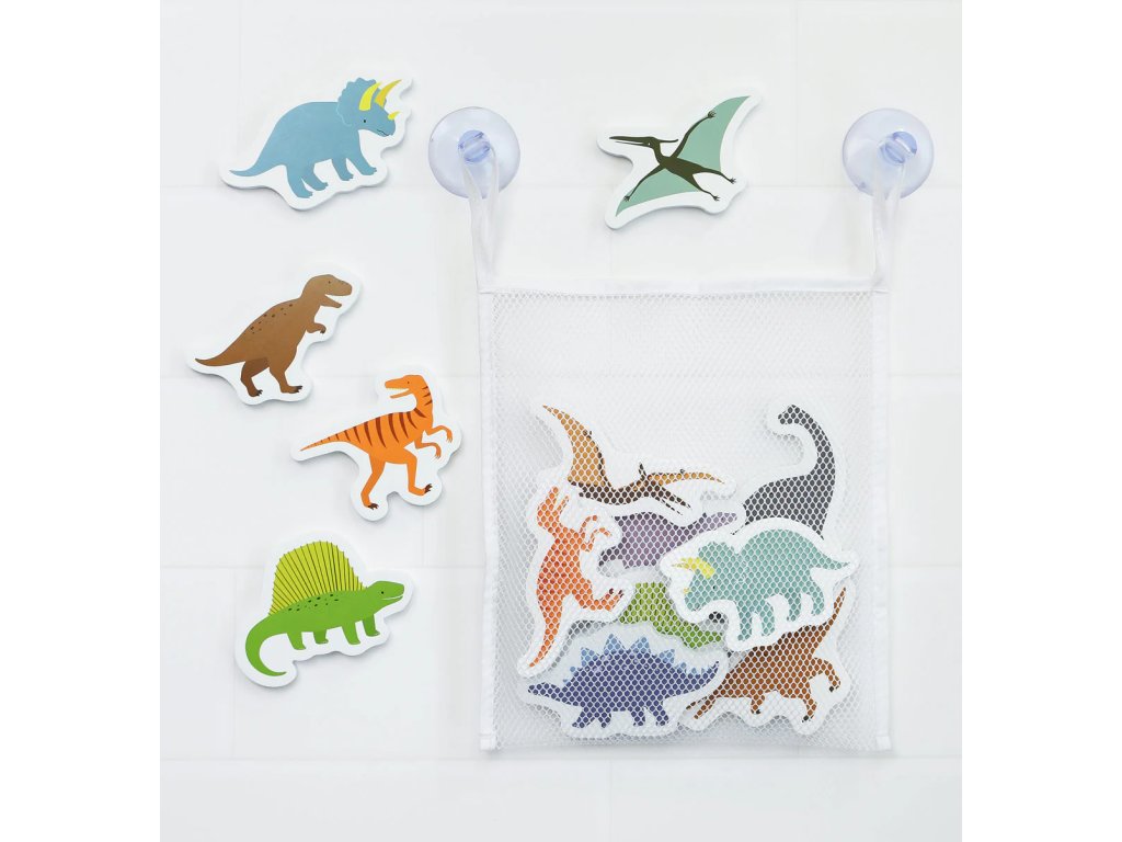 Transformă ora de baie într-o aventură cu drăguții dinozauri din spumă! Cele 14 piese se lipesc de gresie, plutesc pe apă și pot fi depozitate într-o plasă practică cu ventuze după ora de baie. ?