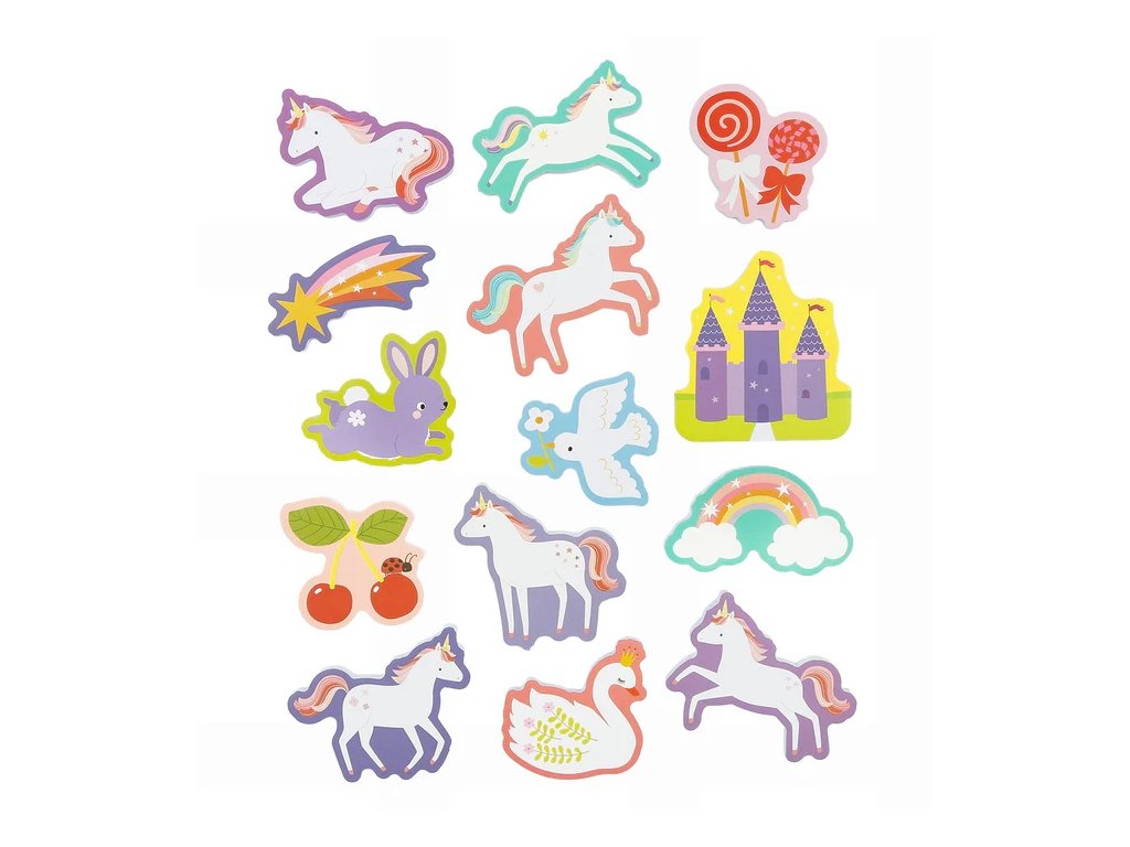 ? Distracție magică la baie cu unicorni! ? Bucurați-vă de o baie plină de imaginație cu aceste jucării drăguțe din spumă pentru baie! Cele 14 piese colorate se lipesc de peretele dușului sau de gresie când sunt ude, iar după baie, le puteți depozita pur și simplu într-o pungă practică din plasă cu ventuze. Piesele nu absorb apa, astfel încât sunt ușor de curățat și se usucă rapid, prevenind apariția mucegaiului.