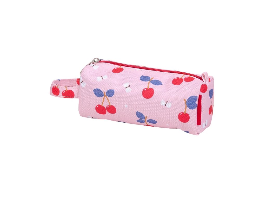 Acest penar spațios, căptușit, cu o buclă practică, păstrează toate pixurile și creioanele în siguranță într-un singur loc. Se potrivește perfect cu rucsacul cu motiv de cireșe – creează un set școlar elegant!