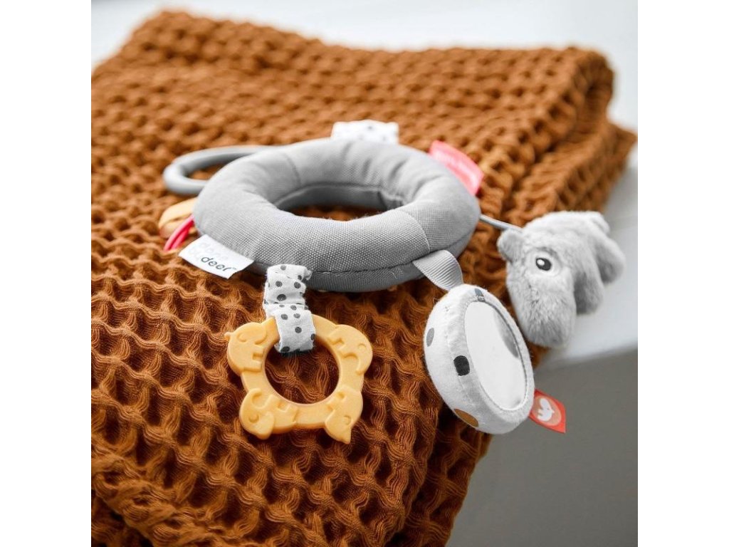 Învelește-te în pătura moale și confortabilă Happy dots de la marca daneză Done By Deer. Este disponibilă în nuanțe de gri, albastru, roz și muștar, cu detalii aurii.