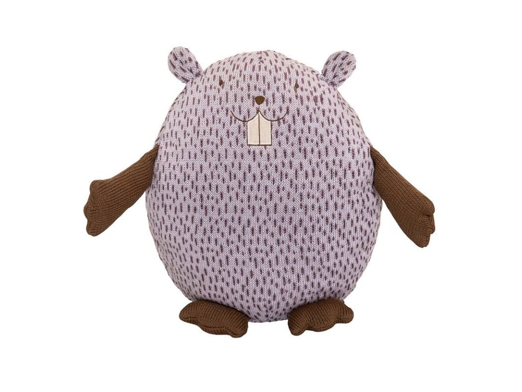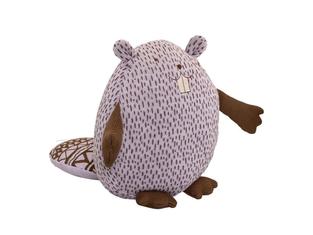 Acest drăguț castor de pluș de la Bloomingville, de culoare violet cu buline și cu coada lungă tipică, vă va cuceri imediat inima. Castorul zâmbitor, cu dinți mari în față, are urechi, mâini și picioare, fiind ușor de transportat.